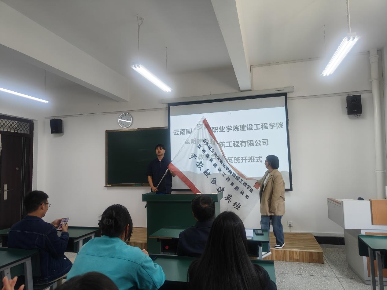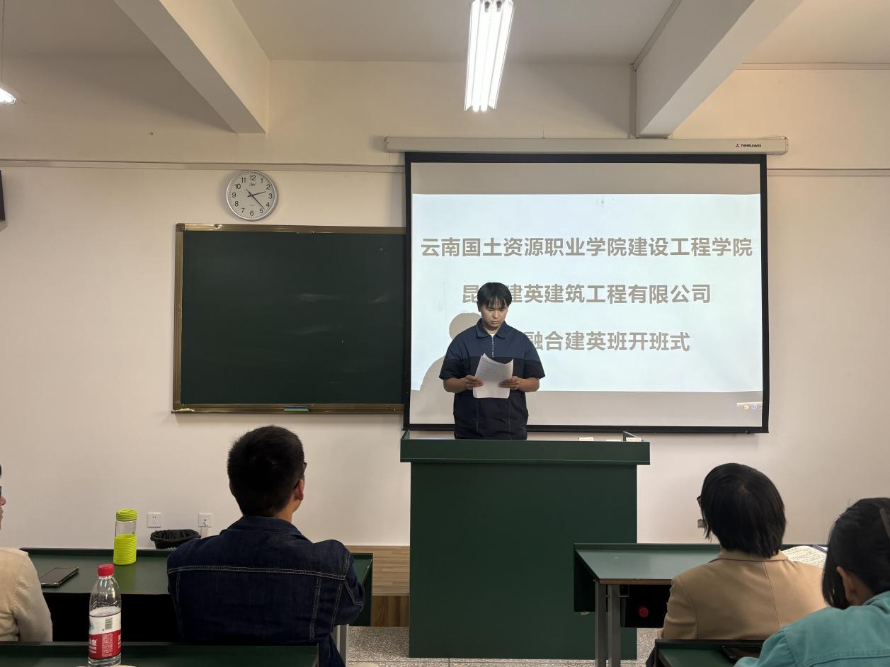 为深入开展校企合作,推进产教融合,为学生现代学徒制、岗位实习和就业提供更多、更好的机会。2024年3月13日下午14:00,澳门十大网投平台排行在明尚楼C403教室举行产教融合“建英班”开班仪式。参加本次开班仪式的有昆明建英建筑工程有限公司总经理陈艳,业务骨干杨文巧、李赛昭,澳门十大网投平台排行党总支副书记李洪香,工程造价专业教研室主任罗昌杰、专业带头人李葆康和工程造价专业的部分辅导员、班主任及学生。本次开班仪式由副书记李洪香主持。