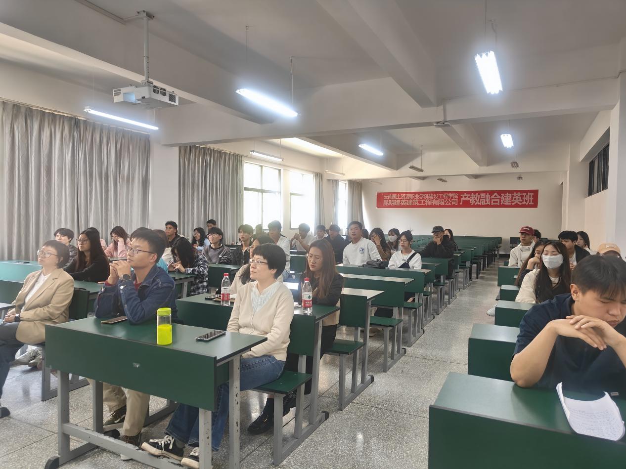 昆明建英建筑工程有限公司总经理陈艳为同学们明晰了学院组建“建英班”的目的,鼓励同学们积极关注未来就业趋势,及早对自己未来的就业做好规划和选择,树立就业意识,拓宽就业渠道,为自己日后的就业打牢坚实基础。