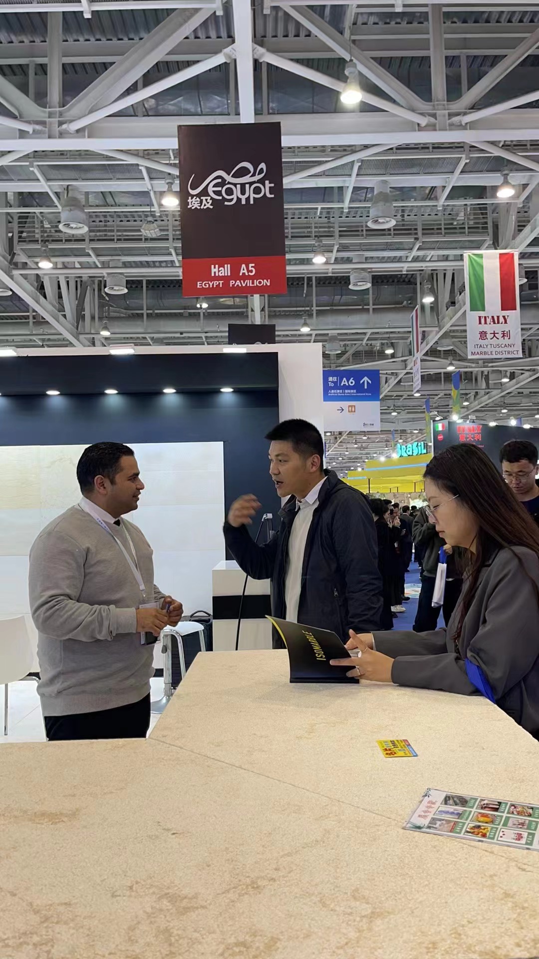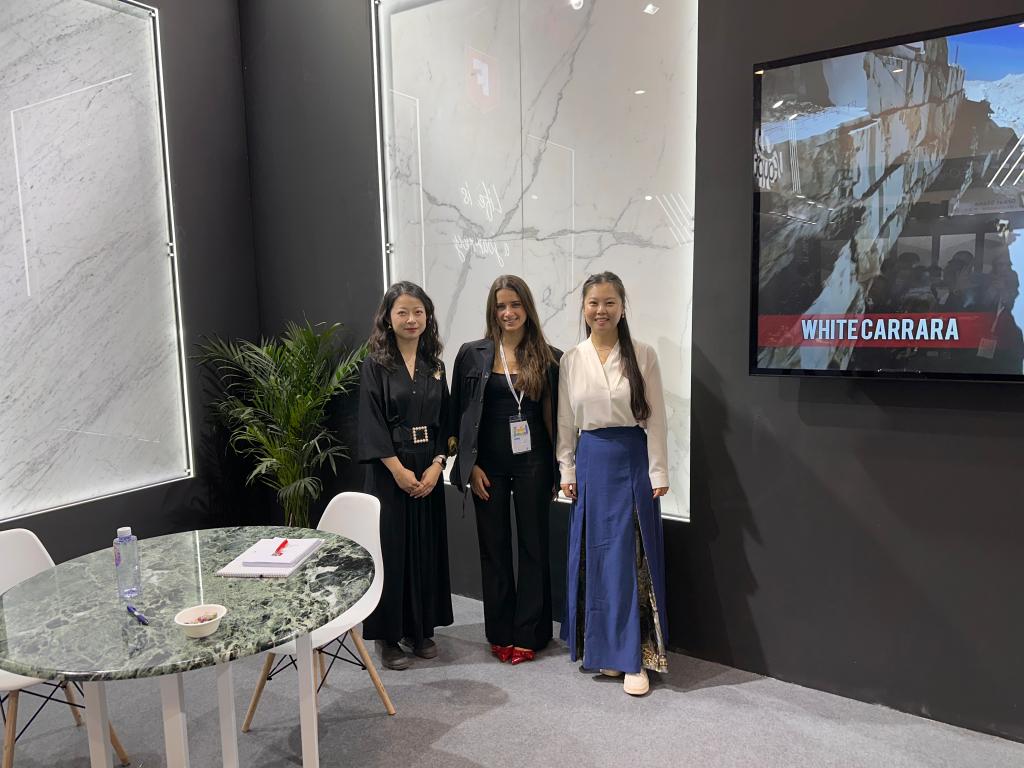 澳门十大网投平台排行建筑材料工程技术专业带头人徐钊,正高级工程师林志强、骨干教师左婷,以及建筑材料工程技术专业班主任和辅导员张凤婷、崔译丹、杨轲一行参加了展览会,与来自意大利、埃及、巴西、土耳其等国际和国内天然石材展商沟通,了解世界石材行业前沿,探讨专业国际化建设,就本专业如何与世界石材行业接轨做深入交流。