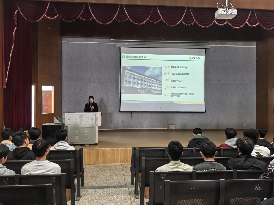 郑蕾女士结合企业宣传片,详细介绍了紫金矿业建设集团在矿山开发、基础设施建设等领域的综合实力,对企业的人才需求情况等作了详细讲解,同时也表达了跟学校达成合作的意向。
