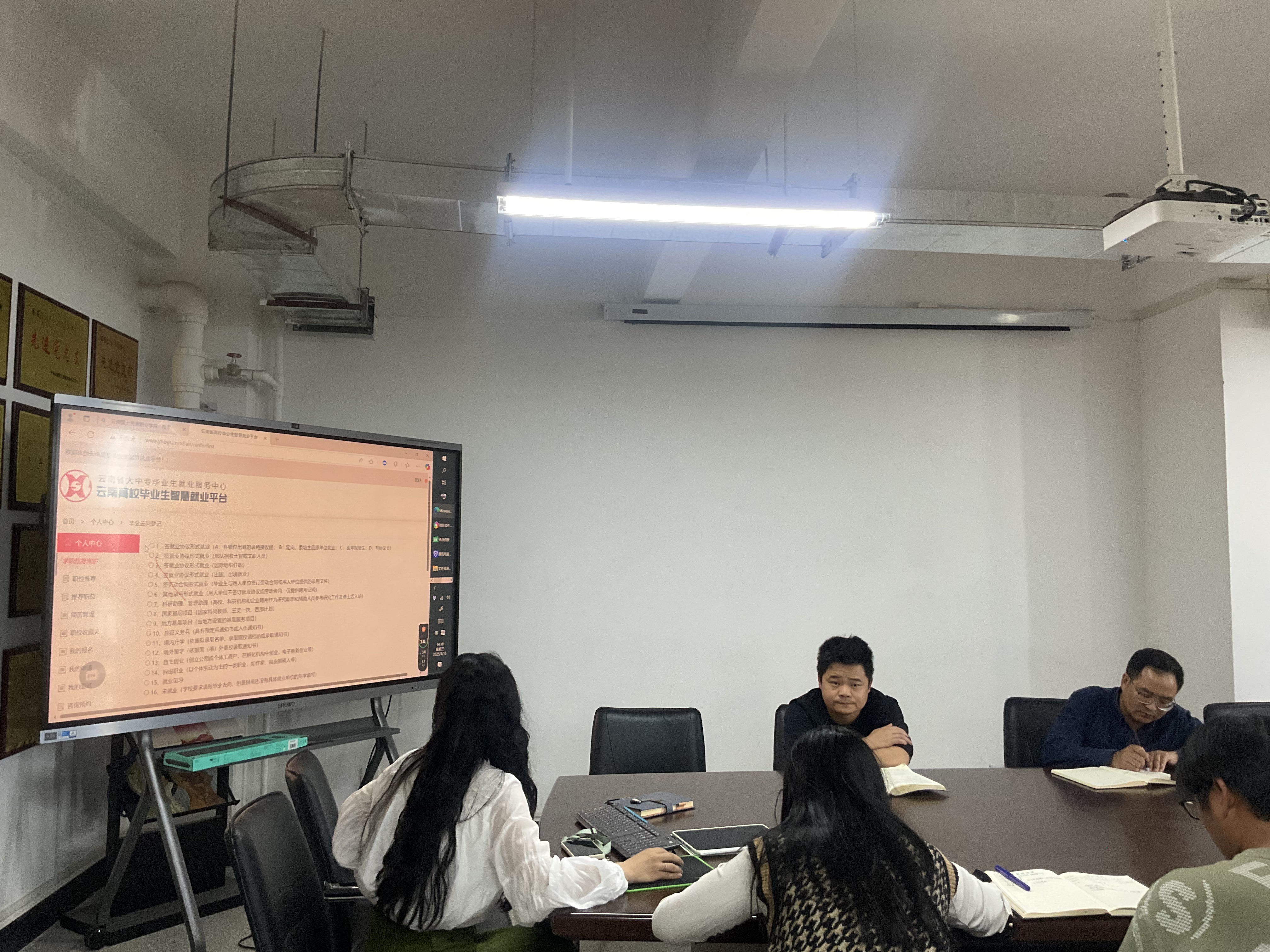 蒋伊能老师系统讲解了“24365大学生就业服务平台”操作流程,重点围绕生源信息提交、线上签约、线下签约、其他去向登记、就业信息核查、户籍档案去向等栏目填报要求进行了细致解读,并通过现场演示帮助班主任熟悉平台操作。她强调,班主任要准确掌握平台功能,及时指导学生完成相关信息的填报和更新,确保就业数据真实、准确、完整。