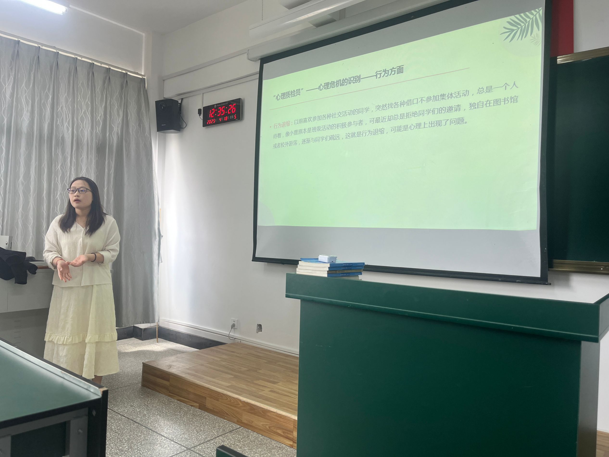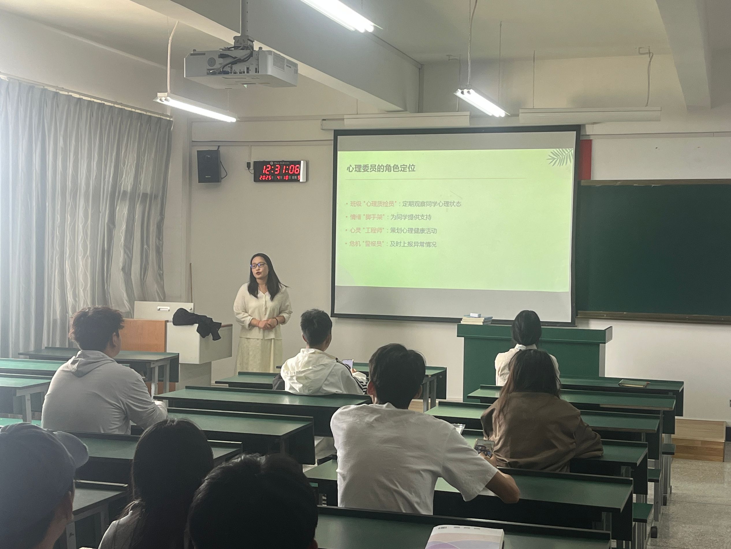 培训伊始,许杨老师结合理论知识、真实案例与实践模拟,系统讲解了大学生常见心理危机的表现特征、识别方法和应对策略。指出掌握这些技能是心理委员履行职责的关键,只有精准识别危机,才能及时为同学提供帮助,筑牢学院心理健康防线。同时要求心理委员要充分发挥心灵哨兵作用,重点关注学业压力、人际冲突、情感困扰等易引发心理问题的关键节点,做到早发现、早报告。此外,许杨老师对心理委员工作进行了详细安排,确保各项工作有序推进。