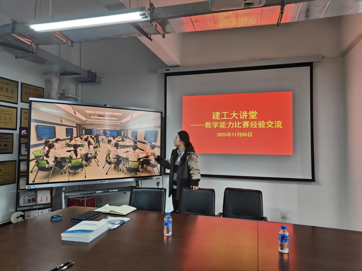 会议第二阶段为学院第三期 “建工大讲堂” ,由左婷老师分享参加省教学能力比赛的经验。左老师结合团队参赛经历,从教学设计、课堂实施、参赛技巧等方面进行深入讲解,通过展示团队参赛资料,为全体教师提供了可借鉴的教学创新思路和参赛准备方法,对提升学院教师教学能力、深化教学改革具有重要参考价值。