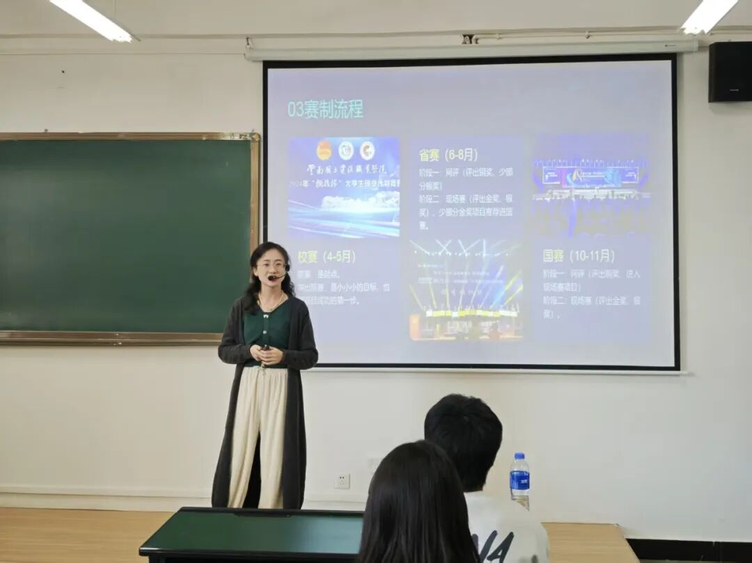 宣讲会上,张宁老师通过对作品选题、创作思路、呈现形式等方面的细致解读,结合多个“挑战杯”优秀参赛作品案例展开生动分享,让在场同学们对赛事作品有了更清晰的认知。