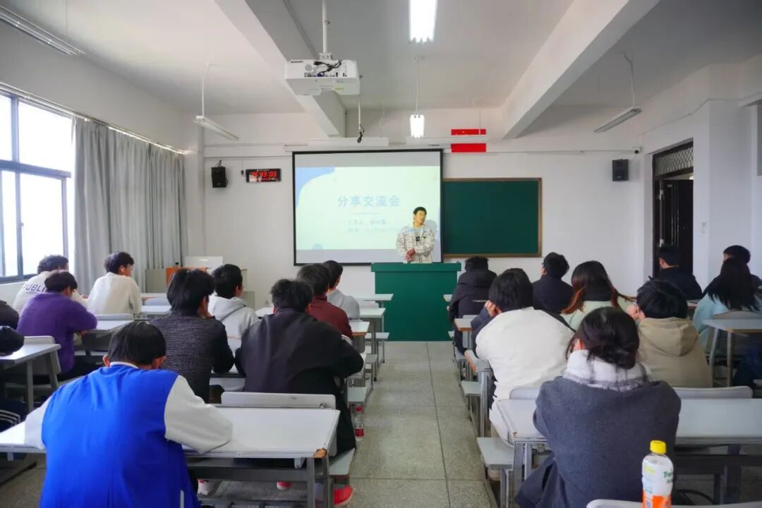分享的最后,梁光猛结合个人成长轨迹,与学弟学妹们进行了坦诚交流。从学习阶段如何平衡专业学习与社团工作,到实习单位选择时如何兼顾“平台资源”与“成长空间”,再到专升本和考研备考时如何突破瓶颈、坚定目标,以及研究生阶段参与科研项目时如何快速融入团队等,他毫无保留地分享了自己的经验教训。他叮嘱同学们,“校园时光是积累资本的黄金时期,扎实的专业知识、高效的学习能力、坚韧的心态,都是未来应对职业挑战的底气,大家要珍惜在校时光,科学规划学业与实践,既要‘读万卷书’,也要‘行万里路’,在理论与实践的结合中实现全面成长”。