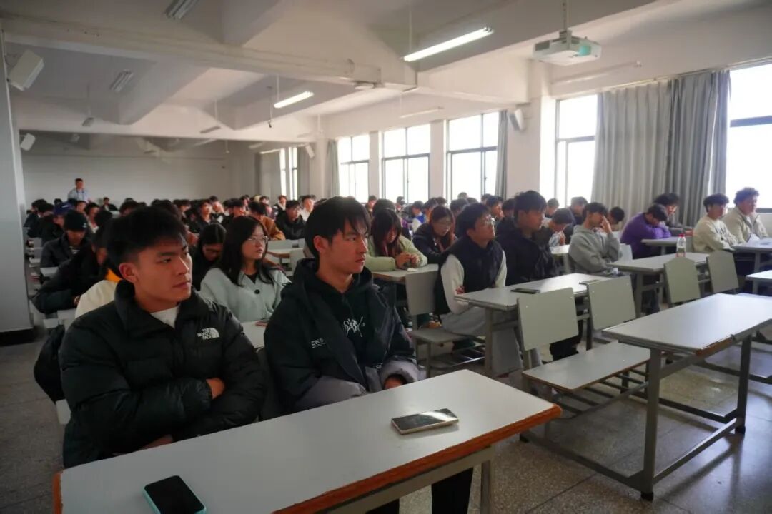 在行业认知重塑板块,他强调了“建设工程行业重经验、轻理论”的传统认知误区。他结合自己从本科实习到研究生学习的经历,用“基坑支护技术优化中的力学原理应用”“BIM技术建模中的工程美学融合”等具体案例,阐释了建设工程行业是兼具科学性、实践性与创新性的复合型专业赛道,强调学术研究为工程实践提供理论支撑,而工程实践则为学术研究指明方向,二者相辅相成、缺一不可。这一观点让在场同学们对专业价值有了更深刻的认知,也进一步激发了大家的学习热情。