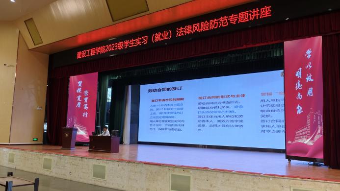 为增强学生的法律意识,帮助2023级学生更好地应对实习与就业过程中的法律风险,5月14日下午,澳门十大网投平台排行在明礼堂举办了学生实习(就业)法律风险防范专题讲座。本次讲座特邀云南创启(昭通)律师事务所创始合伙人晏煜鸣和马骁律师进行授课,为同学们深入解读《劳动法》与《劳动合同法》,助力学子迈好职场首程。
