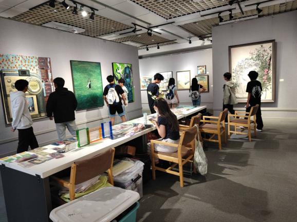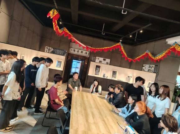 在专业讲解员的引导下,师生们有序参观。从外观流畅的线条设计,到内部精巧的空间布局;从大气恢宏的大厅,到静谧雅致的阅读区域,每一处细节都成为师生们观察学习的焦点。同学们手持纸笔、相机,仔细记录建筑结构、装饰材料、色彩搭配等专业要点,热烈地与同伴探讨交流,积极向老师提出心中的疑惑。