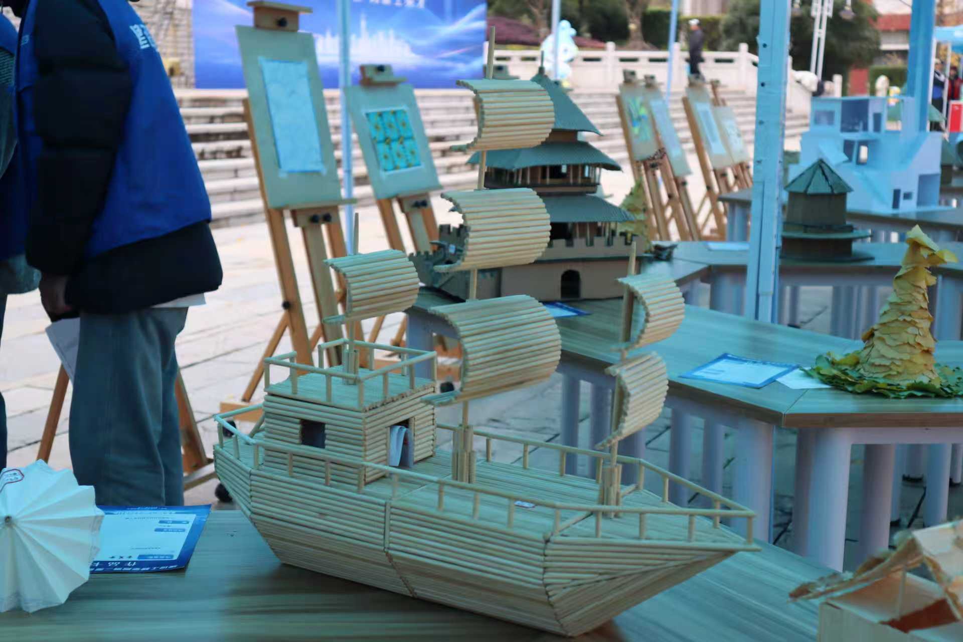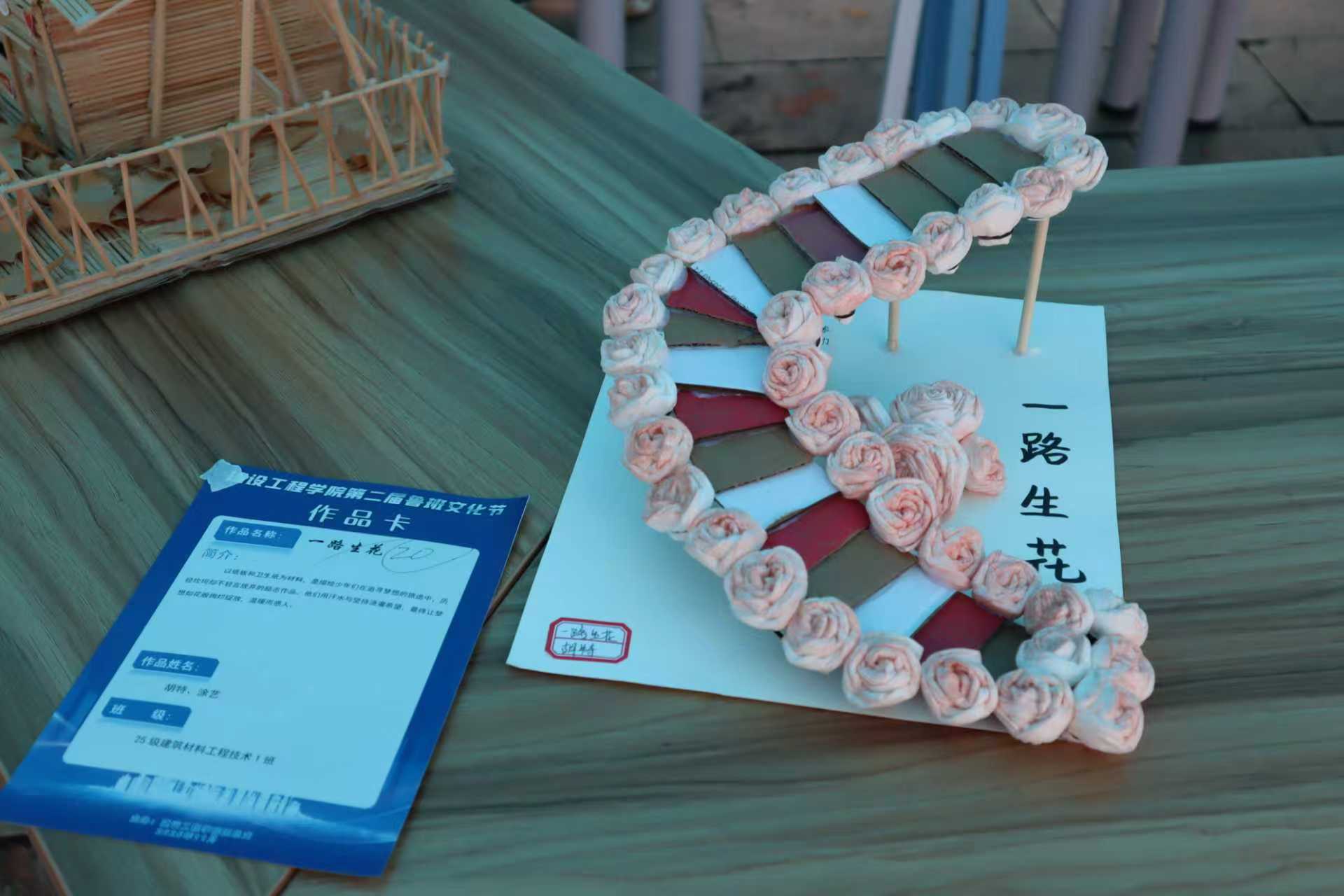 走进活动现场,百余件由建工学院学子精心创作的手工艺品与建筑模型整齐陈列,每一件作品都诉说着创作者对传统工艺的理解与诠释。从结构严谨的抬梁式木构架到造型精巧的四角攒尖亭,从利用可回收物品制作的环保作品到细节繁复的大型楼阁模型,无不展现着同学们精湛细致的工艺水准和天马行空的创新思维。这些作品不仅是技能的展示,更是对鲁班文化深厚底蕴的生动传承。