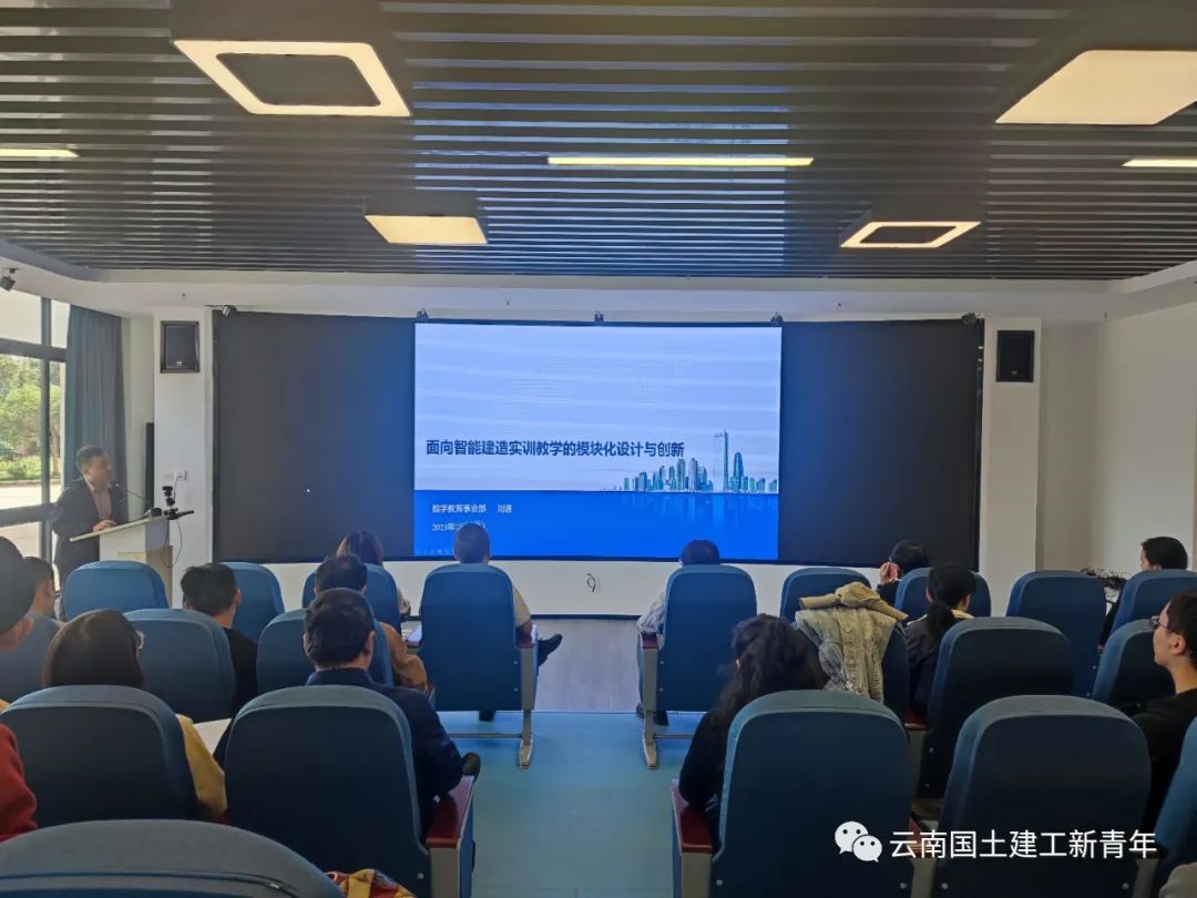 10月19日,澳门十大网投平台排行组织全体教师在载物楼虚拟仿真实训基地集中开展教研活动,学习“面向智能建造实训教学的模块化设计与创新”课程,思考智能建造技术赋能下的实践教学改革。