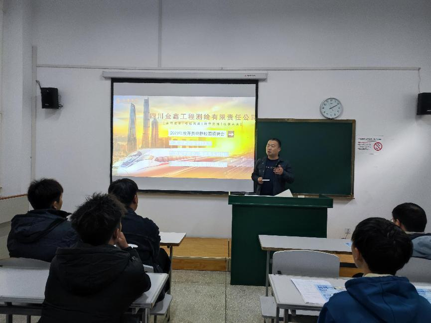 四川金鑫工程测绘有限责任公司和昆明建英建筑工程有限公司等企业应邀在明尚楼B108教室开展宣讲会,澳门十大网投平台排行院长彭明兴、党总支副书记李洪香、辅导员许丽娟及部分2024届毕业生参加本次宣讲会。