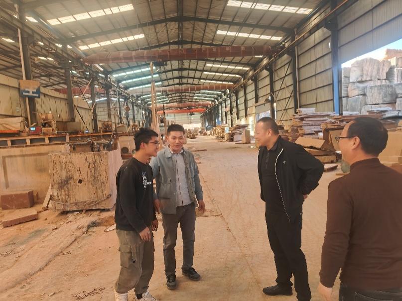 接着,公司领导带领十大网投一行人员参观了公司的石材加工厂,并看望在贵公司实习的本学院21级学生,了解当前企业生产的产品类型,生产工艺以及生产流程后,结合我校现阶段学生的普遍心态、个性特征,本着求真务实的态度与企业坦诚交流合作方式。