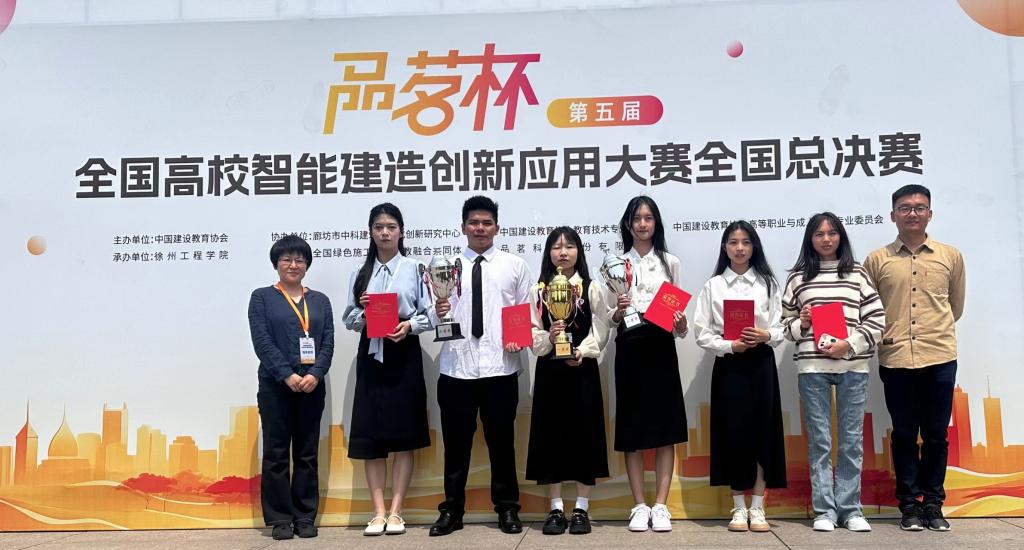 由冷雨桐、肖羽彤、姜丽雯、杨安邦、朱荣兵组成的明湖筑梦队,参加赛项三数字化施工方案设计比赛并荣获全国一等奖。该组的指导老师为罗昌杰、朱磊。