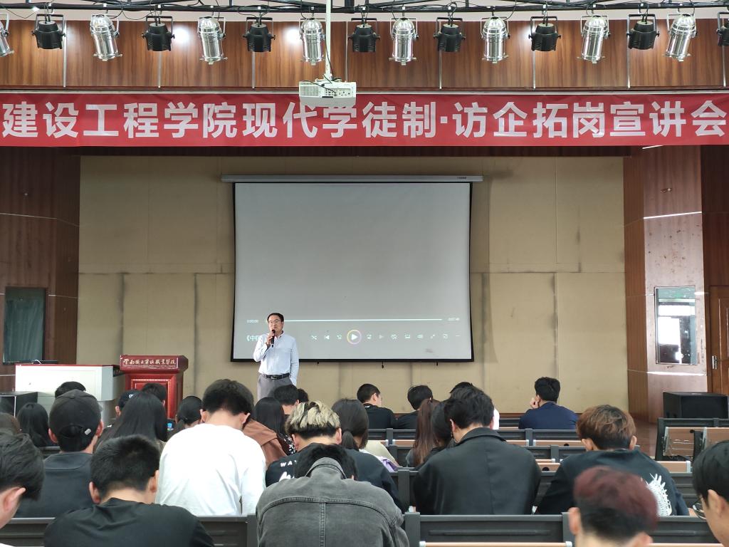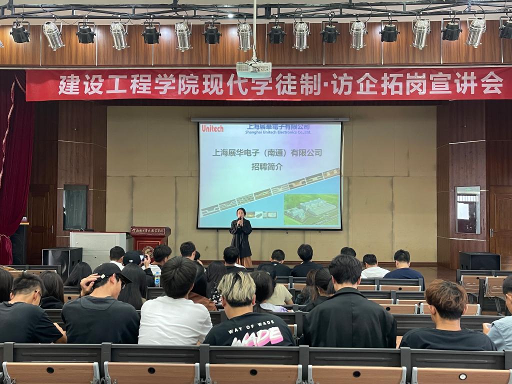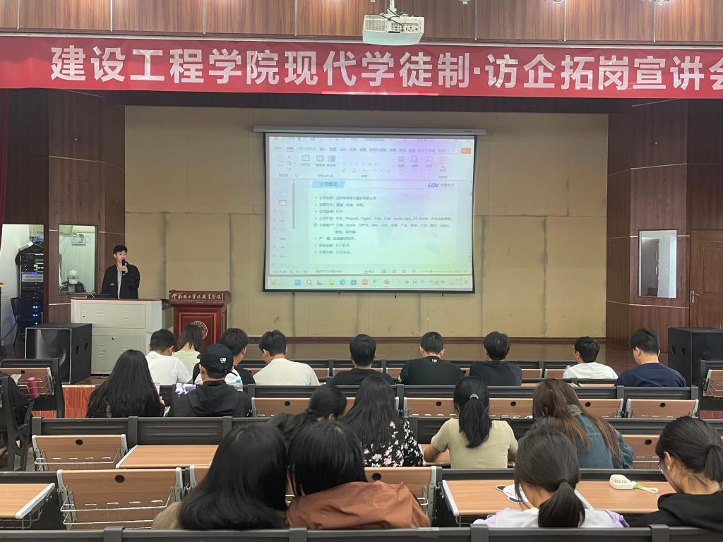 5月10日下午15:30,澳门十大网投平台排行邀请江苏启东乾朔电子有限公司、江苏林洋能源有限公司、上海展华电子(南通)有限公司、南通韦达精密电子有限公司在光荣讲堂开展了现代学徒制暨访企拓岗宣讲会。十大网投党委副书记李洪香主持此次宣讲会,澳门十大网投平台排行2022级工程造价、地下与隧道工程技术、建筑经济信息化管理、建设工程管理、建筑工程技术5个专业的同学参加了本次招聘会。