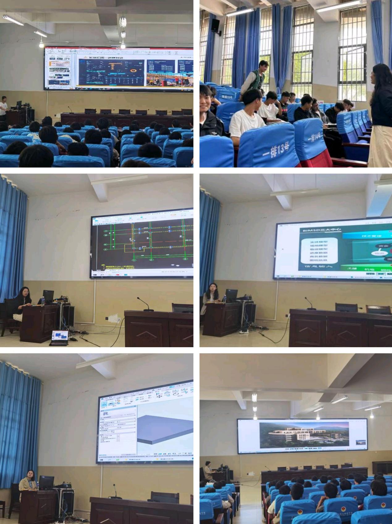 张凤婷老师讲解了BIM技术在建筑行业的应用,以澳门十大网投平台排行的教学楼和图书馆建筑为例,给学生演示了BIM模型。左婷老师介绍了施工现场数字化施工的应用前沿,并给学生展示了今年十大网投学生参加第五届全国高校智能建造创新应用大赛总决赛数字化施工方案设计荣获一等奖的学生作品。王绮滢老师还原了生动的课堂,带给学生钢筋平法专业基础知识,并应用钢筋平法识图教学软件将学生难以理解的结构施工图以直观、立体的钢筋信息模型展现出来,并以在校学生做的建筑信息模型为例,展示了建筑信息技术在工程计量计价中的应用。另外,品茗科技股份有限公司工作人员给学生介绍了智慧工地、绿色工地。