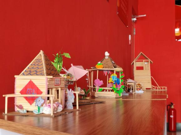 在作品筹备阶段,学生们将课堂所学的建筑结构、空间设计等专业知识灵活运用于实践,通过自主查阅资料、反复推敲设计方案,确保每个创作环节精益求精。从传统榫卯结构的精准搭建,到现代建筑元素的艺术勾勒,每一处细节都凝聚着同学们的心血。制作过程中,他们全神贯注地打磨线条、调配色彩,用灵巧的双手将创意转化为实物,生动诠释了精益求精的工匠精神。