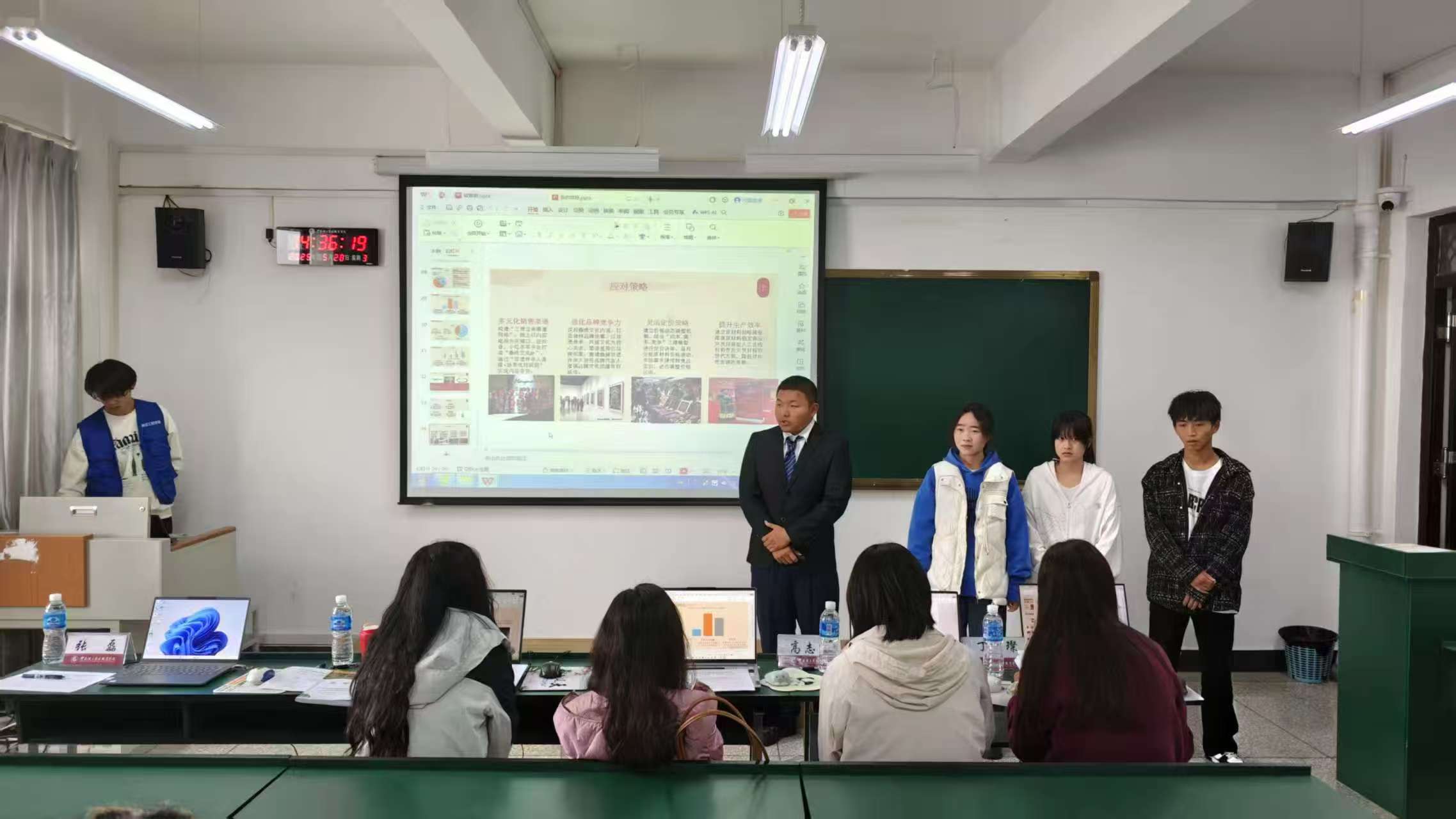 比赛现场精彩纷呈,各参赛团队通过精心准备的PPT展示和实物演示,全方位呈现项目的创新亮点和市场价值。在答辩环节,选手们从容应答评委提问,以清晰的逻辑、新颖的思维,展现出新时代大学生的创新精神与创业热情。评委们从创新性、技术可行性、商业价值、社会效益等维度严格评审,并结合行业发展趋势,为项目优化提出专业指导建议。