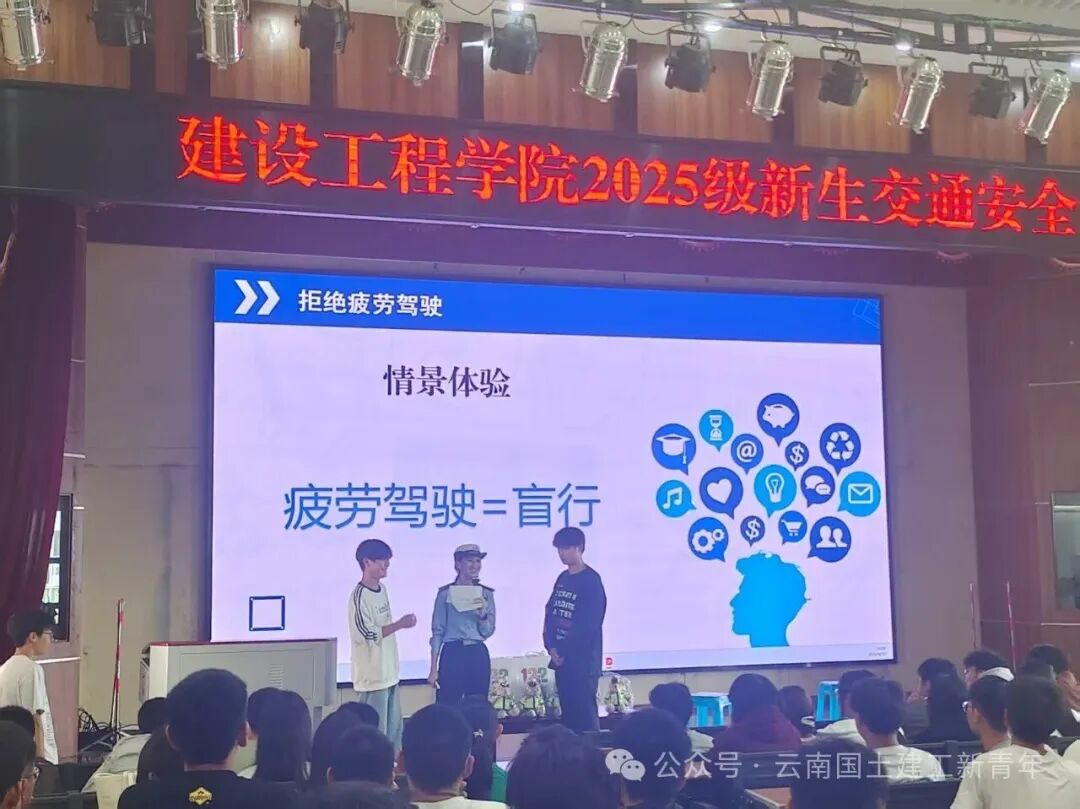 聚焦“一盔一带=安全常在”。季红秋警官通过“模拟安全带”趣味小游戏,让新生亲身体验安全带在突发状况下的保护作用,结合交通事故数据,直观强调规范使用安全装备的重要性。
