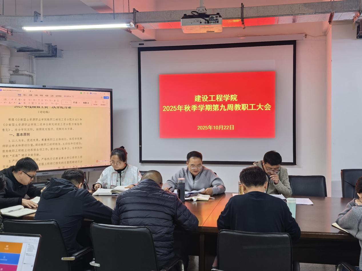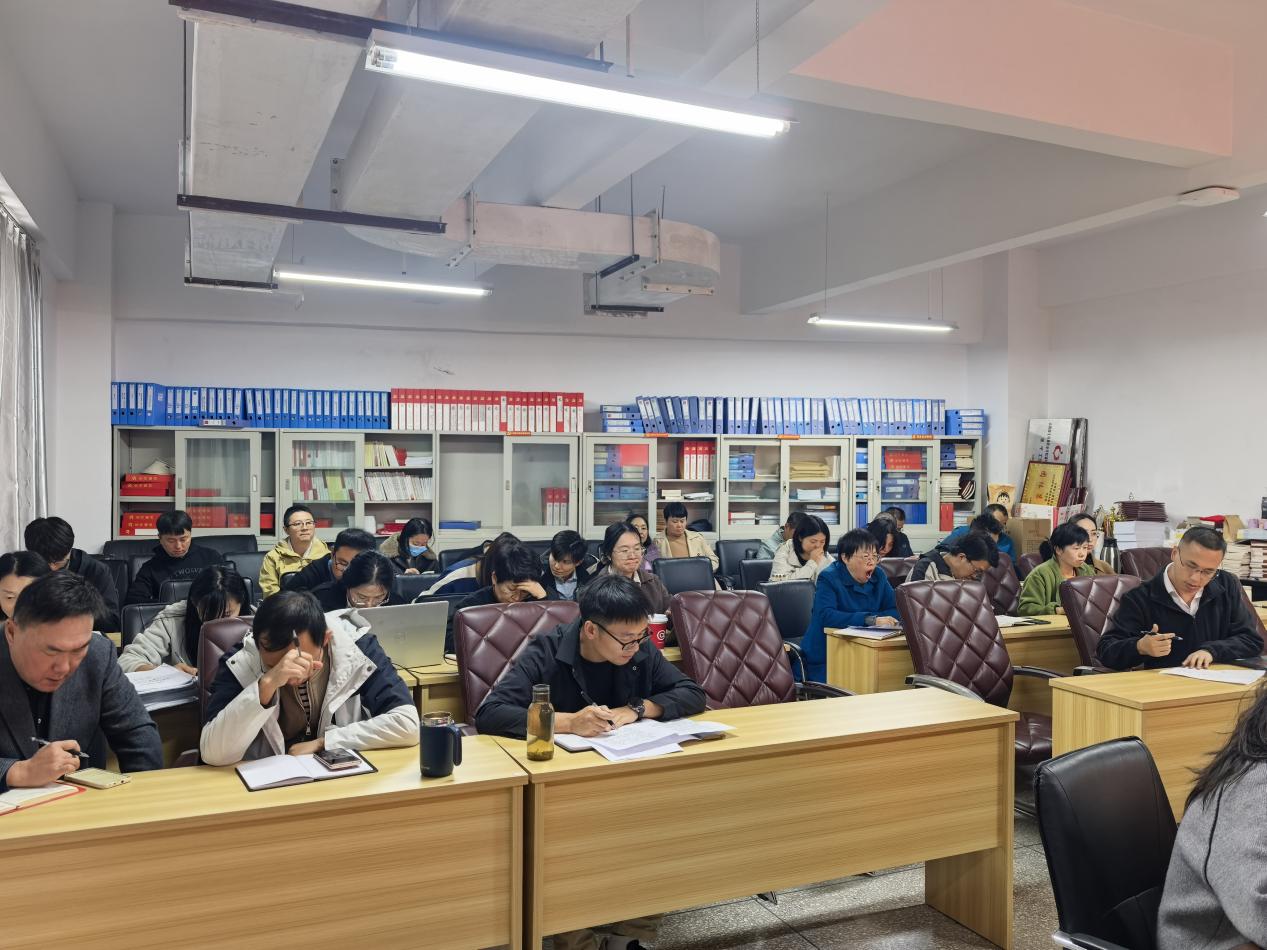 10月22日,澳门十大网投平台排行在明尚楼 C301 会议室召开2025年秋季学期第9周教职工大会。会议由学院党委书记李洪香主持,全体教职工参加。