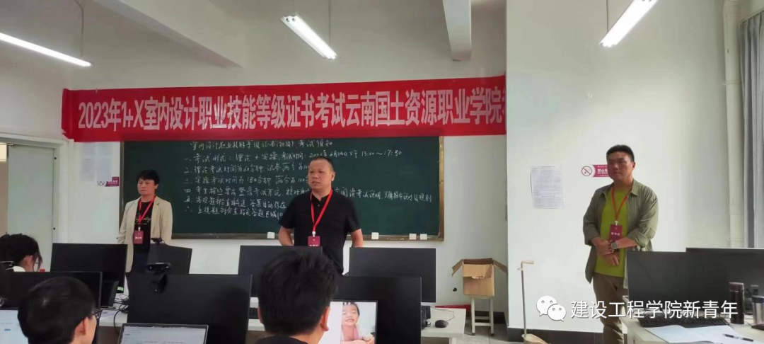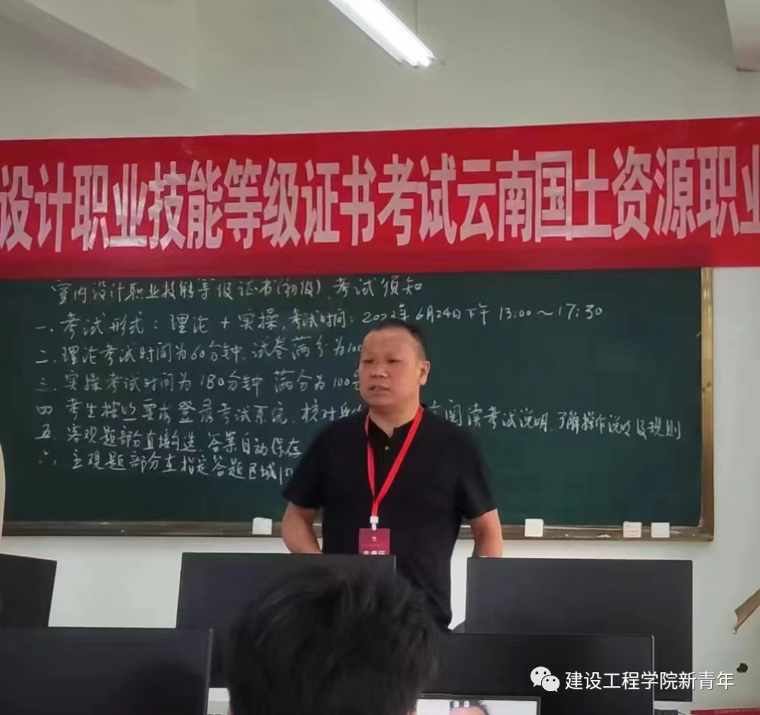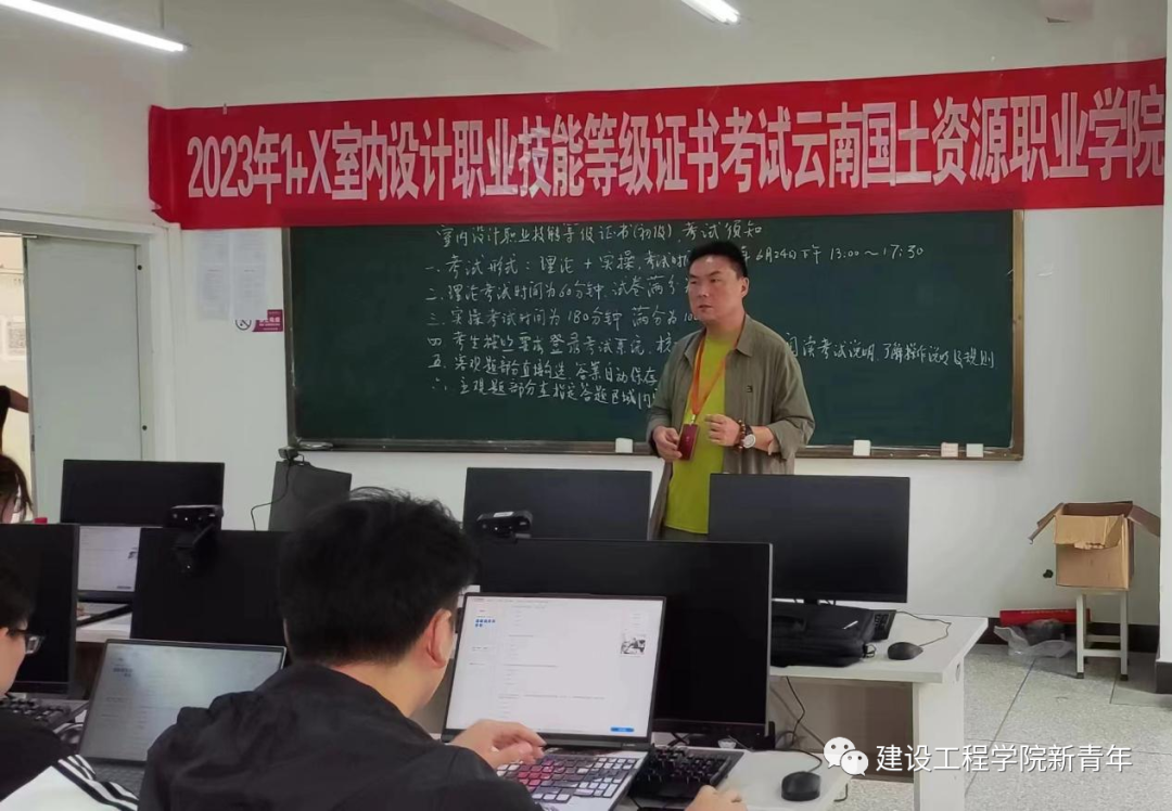 2023年6月24日下午13点至17点,十大网投建筑装饰工程技术专业“1+X”室内设计职业技能等级证书(初级)考试在明尚楼C509如期举行,2021级50名建筑装饰工程技术专业的学生参加了此次认证考试。澳门十大网投平台排行院长彭明兴、朱磊老师、林志强老师作为本次认证考试的监考员。
