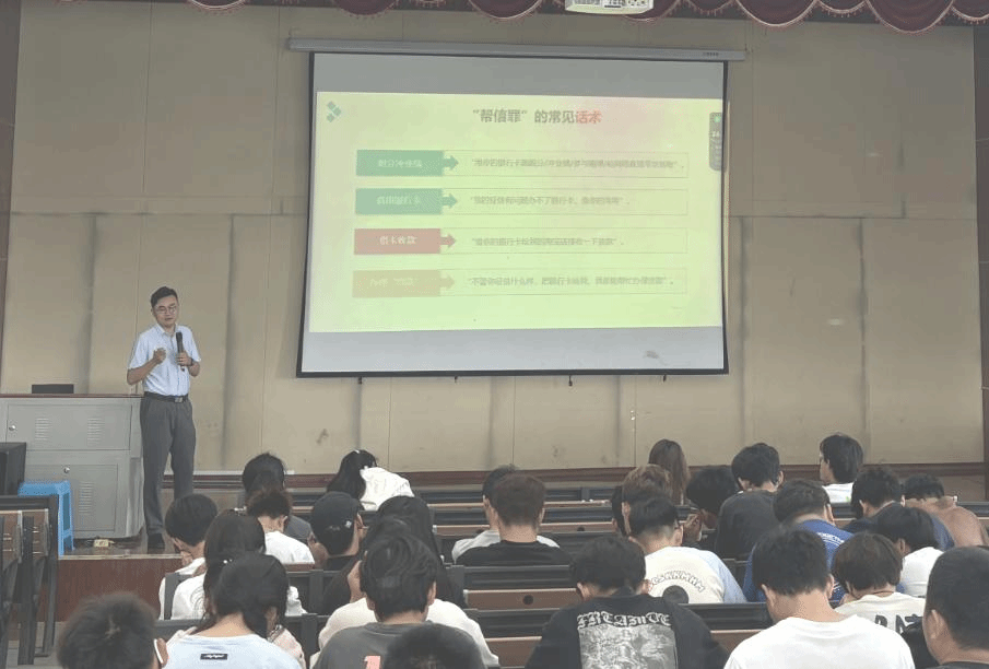 曹律师以发生在大学生中的真实案例为切入点,从三个方面进行讲解。一是防范落入“帮信罪”陷阱。“帮信罪”的常见形式有:租售微信号、刷单走流水、帮助犯罪分子拉微信群、出售出借“两卡”——“银行卡”和“手机卡”、提供结算账户给他人使用收取佣金、为诈骗犯罪集团提供开发软件、提供技术支持等。曹律师特别提醒同学们切勿贪小便宜将自己办理的手机卡、个人银行卡、微信、支付宝等支付平台账户买卖、租赁给他人。其次还要提升个人保护意识,妥善保护好身份证、银行卡、手机卡,一旦丢失立即挂失,对于废弃不用的应及时办理注销业务,不随意丢弃。此外,在外实习时,要充分了解工作岗位,不要轻易相信QQ陌生人私信、贴吧或街边小广告等信息。