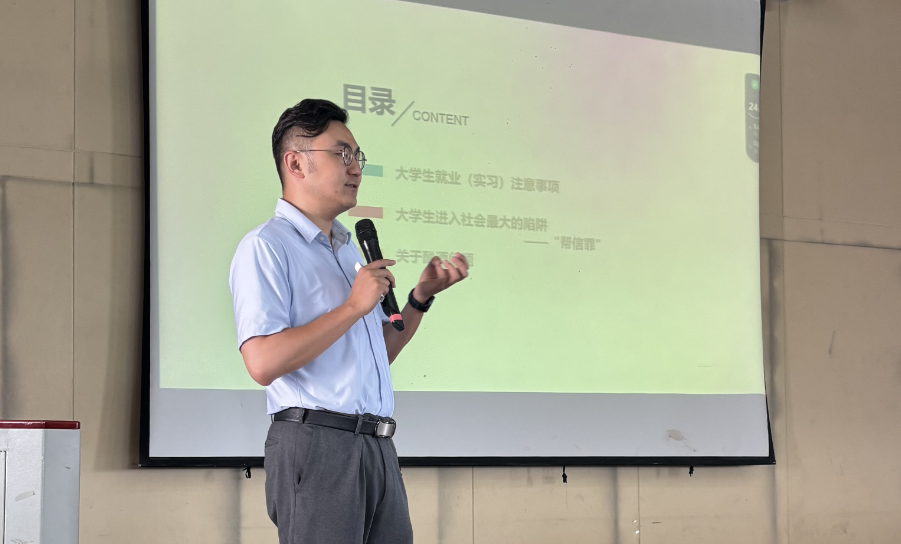 2024年6月12日,澳门十大网投平台排行在光荣讲堂举办大学生就业(实习)法律风险识别与防范专题培训。培训对象为班干部及学生代表200余人。由学校发展规划处邀请云南恒矩律师事务所曹路明律师来校开展普法教育培训。