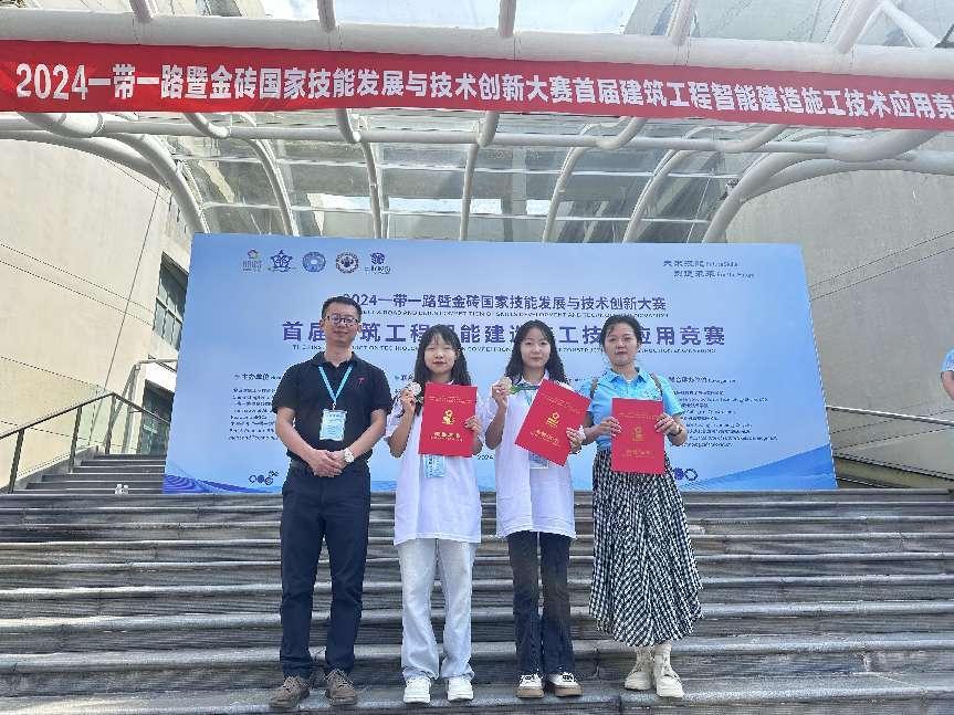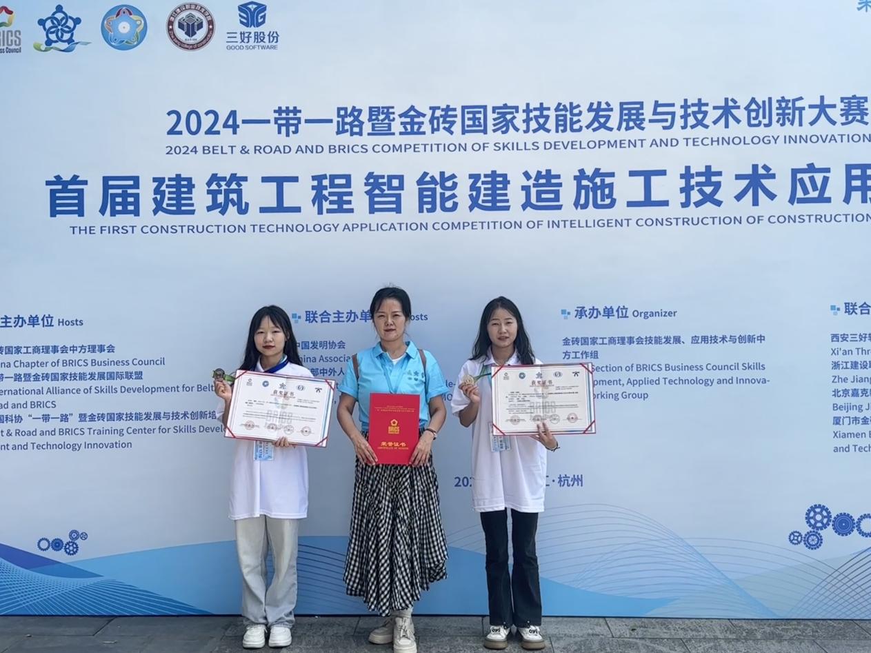 2024一带一路暨金砖国家技能发展与技术创新大赛首届建筑工程智能建造施工技术应用赛项全国总决赛于2024年9月27日至28日在浙江杭州举行。由我校澳门十大网投平台排行老师崔译丹带队,2022级学生冷雨桐、王雄彦组成的参赛队伍参加了比赛,经过激烈角逐,我校学生荣获二等奖。据悉,本赛项为建筑施工领域在金砖大赛平台举办的首届赛事,共有来自全国高职院校的282支队伍参赛,是同类大赛中属覆盖区域最广、参赛规模最大、参与人数最多的赛项之一。