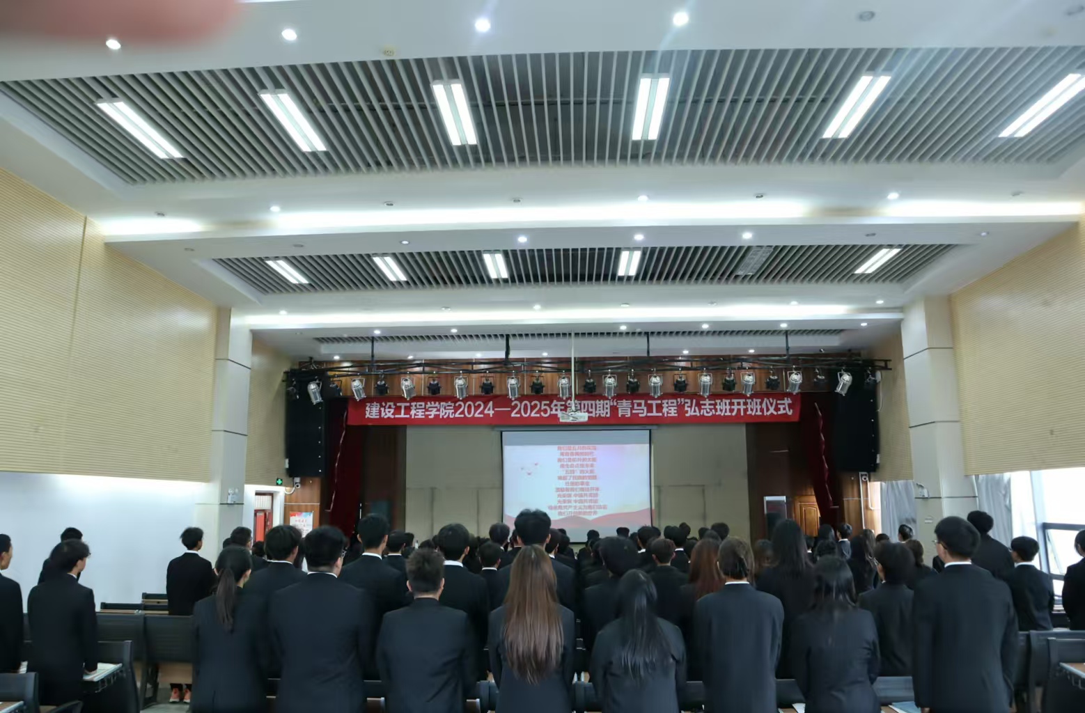 澳门十大网投平台排行党委书记李洪香、副书记张军红、学生党支部书记及本期“青马工程”培训班班主任张宁、副书记刘艾吉、宣传委员许丽娟、本期“青马工程”培训班副班主任张昊宇、高志鸿以及本期培训班全体学员参加了开班仪式。开班式由张宁老师主持。