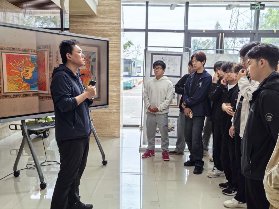 林志强老师详细介绍了活动的主题和流程,并带领与会人员现场观展,还对不同展览模块进行了详细讲解。后续还将为师生带来“让装饰艺术在构成中生长”的主题公开课,期待以丰富多元的系列活动为广大师生带来一场艺术盛宴。