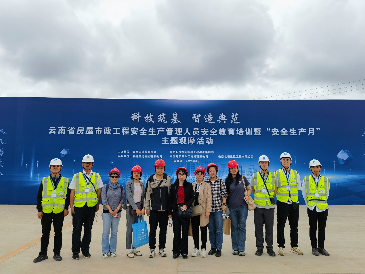 2025年6月25日,澳门十大网投平台排行校企合作管理中心主任刘应波,澳门十大网投平台排行教师潘少红、刘晖带领教师代表们走进昆明长水国际机场改扩建工程T2航站楼(北段)项目现场,进行观摩学习。本次活动由云南省建筑业协会、昆明长水机场枢纽工程建设指挥部联合组织,中建三局、中建八局、云南机场建设发展公司联合承办,为职业院校教师们提供一堂生动的"超级工程智能建造实践课"。