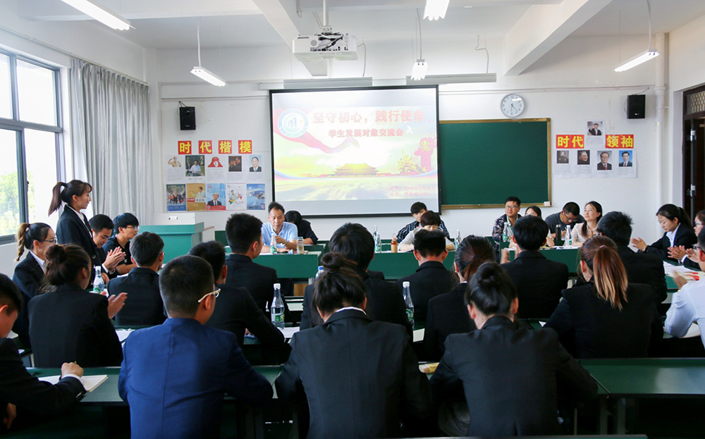 活动伊始支部书记张宁同志本次交流会的目的:帮助发展对象提高政治站位,进一步了解习近平新时代中国特色社会主义思想,感受中国共产党在新时代的伟大创举。每位党员发展对象在交流会积极发言且悉心接受各位党员教师的提问,在交流会上,大家踊跃发言,围绕对党的认识以及党的发展目标进行深入讨论,积极分享自己的入党初心。道路决定命运,初心指引未来,虽然大家发言的角度、观点及看法发不尽相同,但思想核心只有一个——志愿加入到中国共产党这个全心全意为人民服务的队伍当中。在交流会上各位党员发展对象也充分表达了自己志愿加入中国共产党的承诺与决心。只有明确自己的入党动机,端正入党态度,不忘初心,牢记使命,才能为未来的发展道路作正确的方向指引。