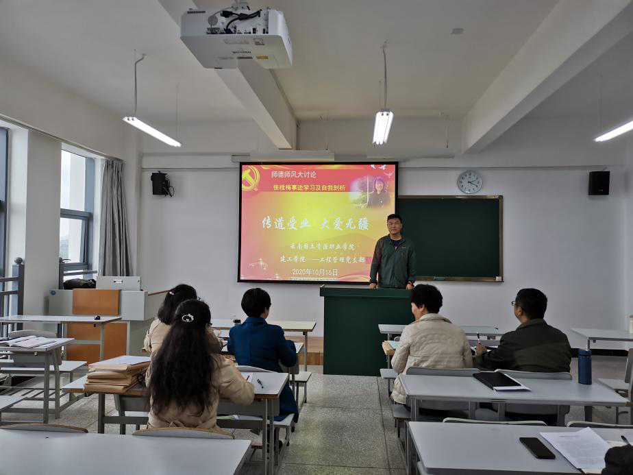 10月16日下午,十大网投工程管理党支部开展“对标先进塑师德,争做四有好教师”为主题的师德师风大学习大讨论活动,以张桂梅同志为榜样,全面落实立德树人根本任务,示范引领做表率。会议由工程管理党支部书记林志强同志主持。