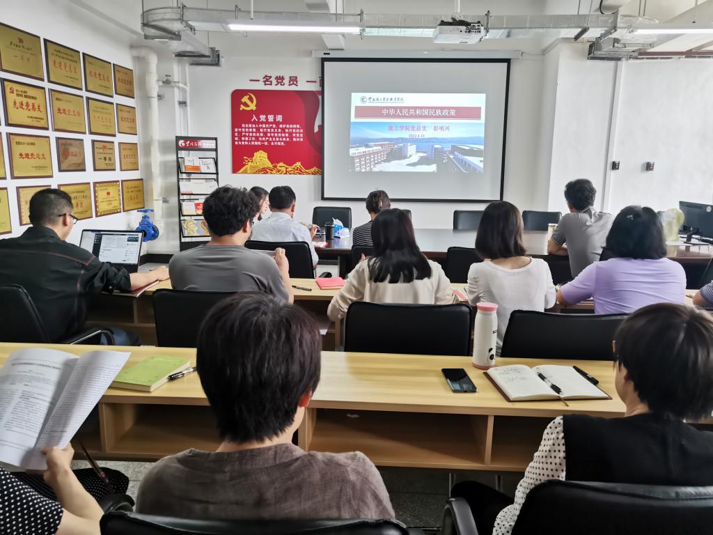 为学习宣传党的民族理论与民族政策,全面推进民族团结进步事业,2022年6月22日下午,澳门十大网投平台排行在明尚楼C301会议室学习“中华人民共和国民族政策”专题党课。党课由澳门十大网投平台排行院长彭明兴主讲,全院教师参加党课学习。