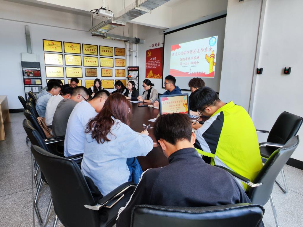 会议伊始,团总支负责人张宁老师先对本学期迎新工作的圆满结束做出了肯定,并希望同学们保持干劲、继续加油,以更好的面貌迎接二十大的召开。接下来,对各部门的工作进行了统筹规划和具体安排。紧接着,辅导员靳凯老师主要对迎新晚会的各项准备工作做了着重强调。