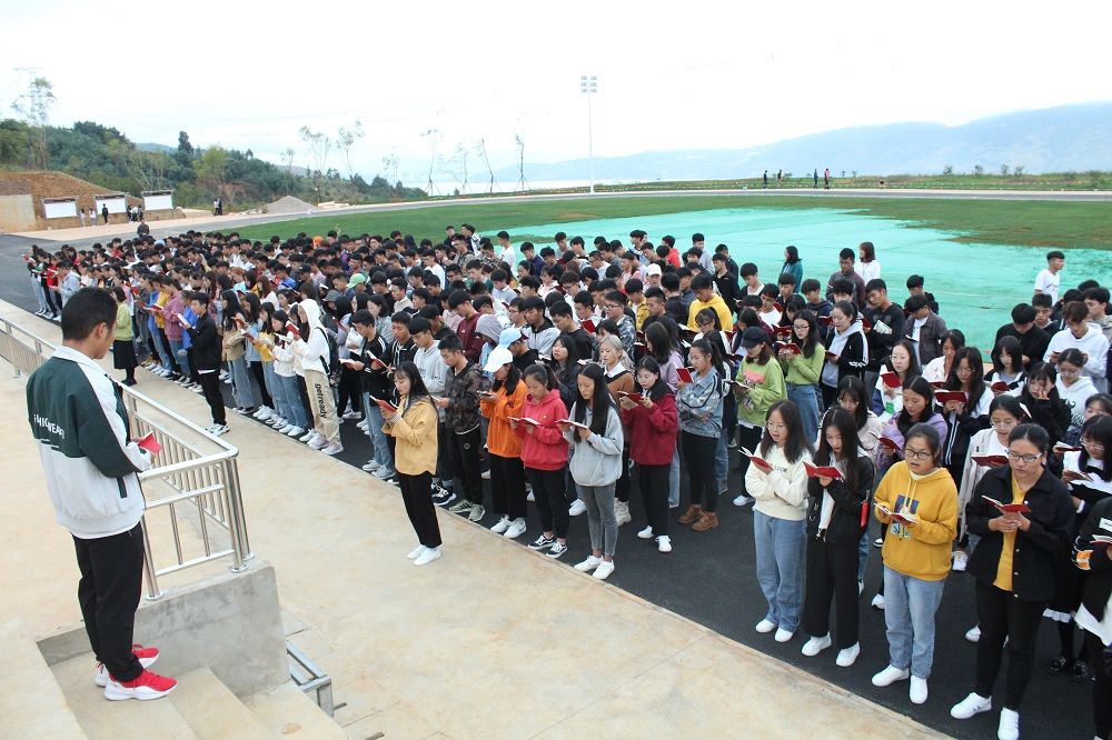 人文日新,从青年起;青年日新,从晨读起。为践行“1958”培养学生教育活动,培养学生勇于担当,善于作为的工匠精神。2019年10月14日7:50,国土澳门十大网投平台排行在足球场开展了第一次晨读。晨读由党总支书记高昆老师带领十大网投19级部分班级读《中国共产党章程》。