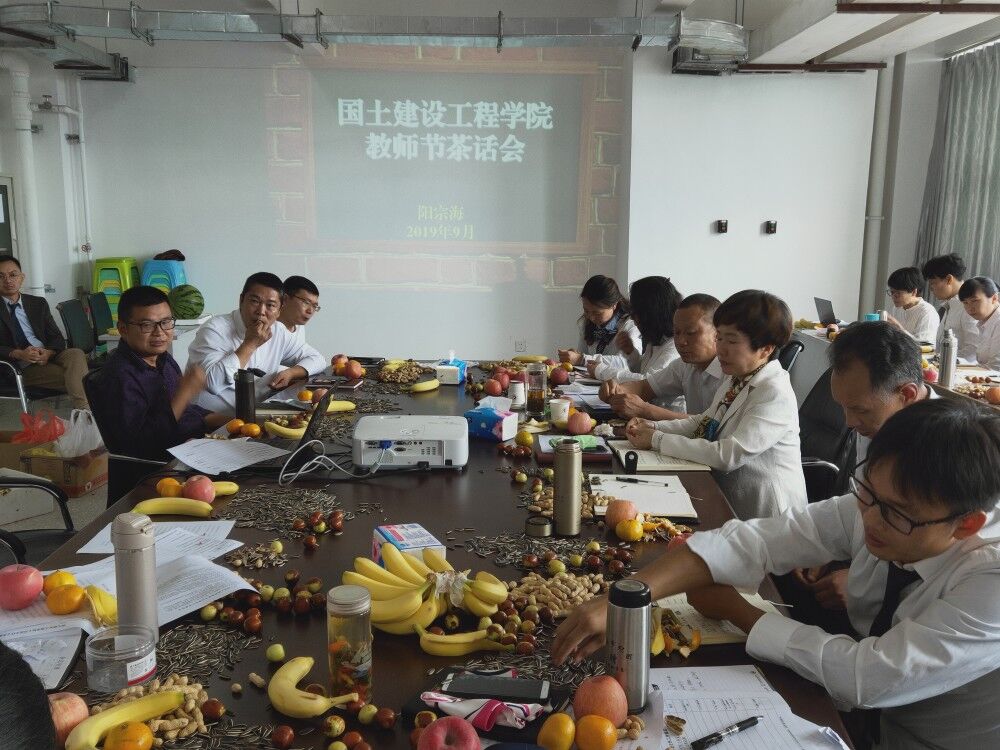在第35个教师节到来,为弘扬“师道”工匠精神,喜迎教师节,9月10日国土澳门十大网投平台排行党总支在明尚楼C301会议室举办了以“弘扬高尚师德,潜心立德树人”为题的教师节茶话会。国土澳门十大网投平台排行党总支书记高昆,院长彭明兴、副院长罗启明及全体教师参加茶话会,会议由党总支书记高昆主持。