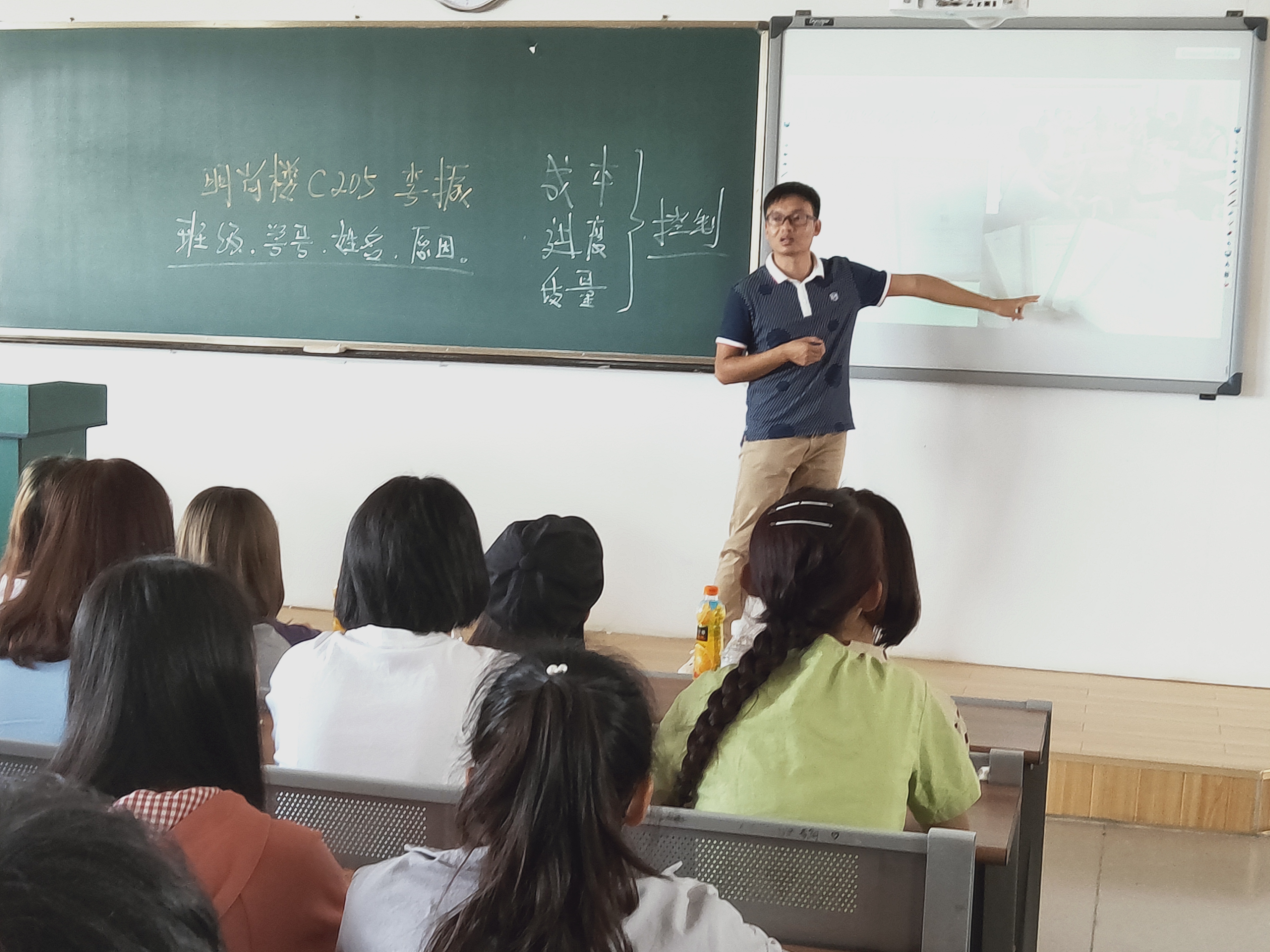 紧接着,团总支书记张宁老师介绍了与学生息息相关的综合测评和学生宿舍管理实施办法。从参评对象、原则、三大测评内容和组织实施管理方面介绍了综合测评情况,并指出,测评关乎学生切身利益,尽早熟悉综合测评相关内容对学生开展学业有重要意义。关于学生宿舍6T管理(试行)实施办法,张宁老师从宿舍管理理念、管理要求、考核方式、督查制度方面做了讲述。张宁老师对学院内部管理规定也做出了具体要求,新生要严格按照学院请销假制度、班主任管理制度、辅导员管理制度等规定,积极配合学院教育教学管理,顺利完成大学学习和生活。