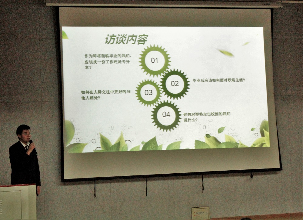 最后,杨光敏老师作总结发言,首先对各位同学的认真付出及出彩的表现表示肯定,建议同学们用“P计划D执行C检查A处理”的工作步骤去认真思考学习和工作中的问题,并提出大学生对自己要进行科学合理地规划,不断积累经验的建议。同时也希望各参赛者能从这次比赛中得到收获,在未来能更好地展现自己的风采;杨寿鑫老师在18级访谈大赛中作点评,他高度评价了此次活动:准备充分,主题鲜明,案例真实,此次活动对学生的职业生涯有很重要的意义,同时,各位同学应该放眼世界,抓住时代机遇,发展自己的兴趣和特长,最终在职业发展中有所成就。