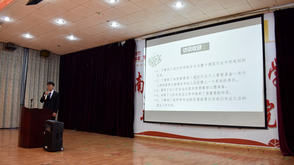 站在舞台上的每一位同学借用PPT讲述自己的访谈过程和心得体会。在历时近一个半小时的比赛中,参赛的同学表现的非常好,针对评委老师的提问都回答的十分顺畅。