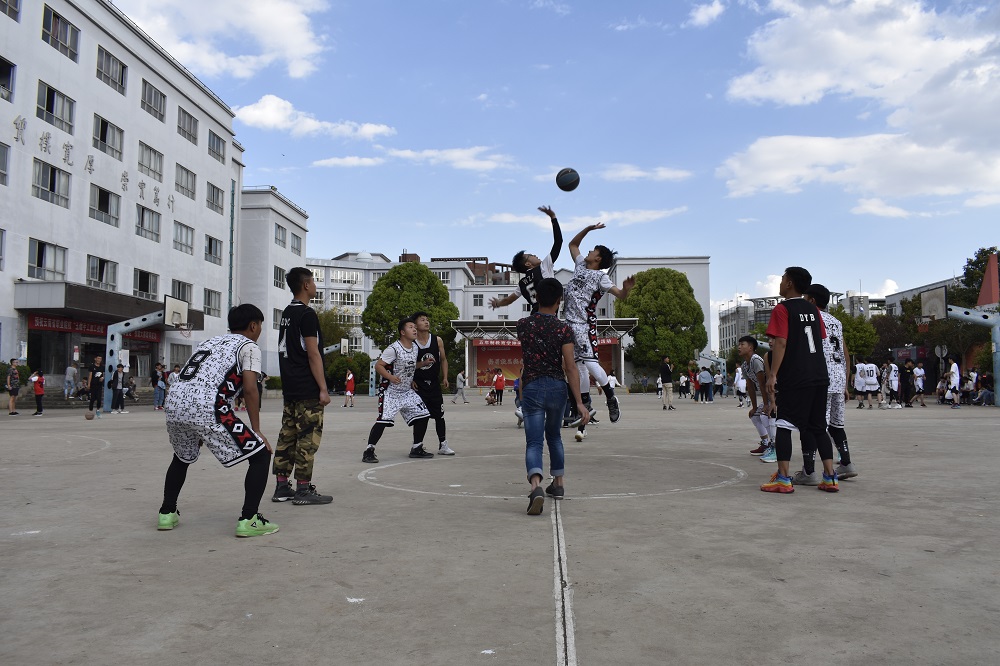 伴随着阵阵呐喊声篮球赛开始了激烈的角逐,场上队员迅速进入状态,个个雄姿英发,各队球员主动出击、直逼篮板,几个轮回下来,双方比分僵持不下,氛围嗨爆全场。
