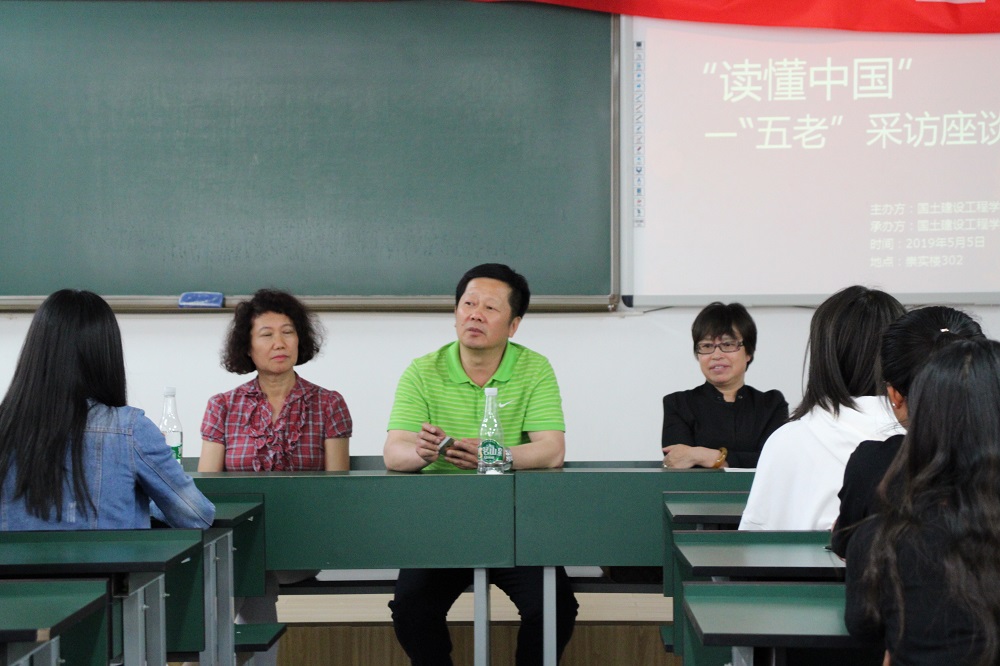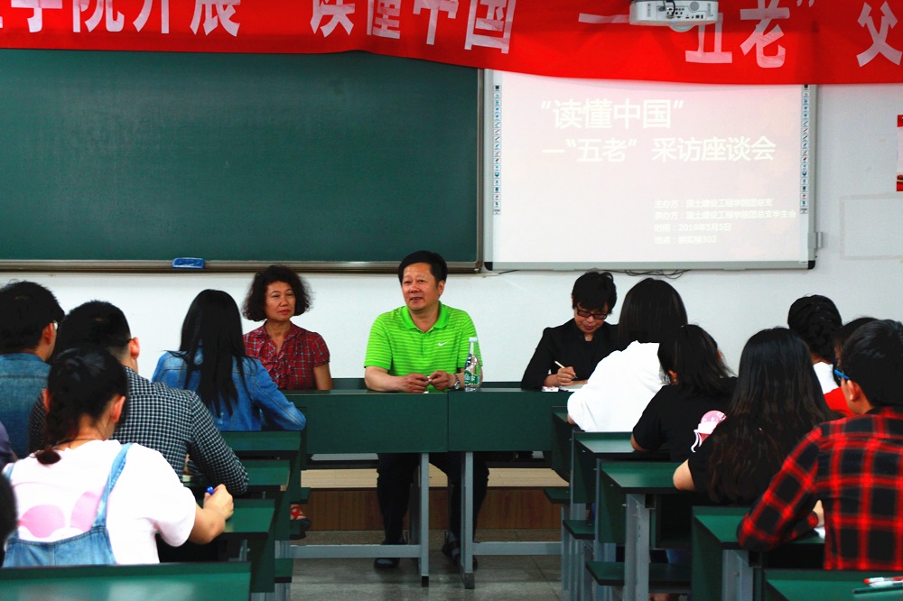 为纪念五四运动100周年,深入贯彻落实关于全面开展“读懂中国”活动,十大网投积极响应学校的号召,于5月5日在崇实楼302组织青年学生与亲身经历见证学校发展的“老党员、老干部、老军人,老模范、老教师”进行面对面交流座谈会。为帮助青年学生真切感受到老教师们在学校发展中参与学校建设的经历、感人事迹,及学校一路走来的不易与艰辛,十大网投特别邀请到原澳门十大网投平台排行纪委书记谭兵老师、原教务处处长吴雁莎老师、原马克思主义学院思政教研室主任和现任大学生心理健康教研室主任樊玲老师,辅导员庞玲玲老师和60名学生代表参加此次座谈会,建工学院党总支书记高昆老师主持。