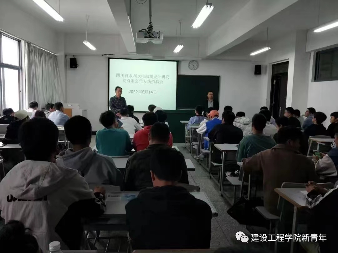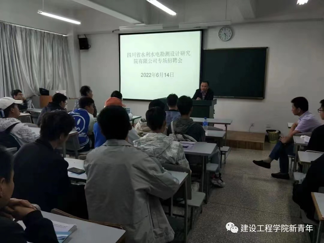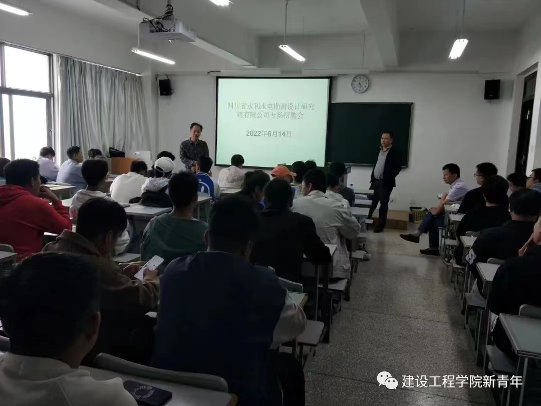 6月14日,澳门十大网投平台排行在明尚楼C207开展了优质企业进校园宣讲招聘活动。本次宣讲会邀请了四川省水利水电勘测设计研究院有限公司进行现场宣讲招聘, 20级钻探班全体学生参加宣讲会。
