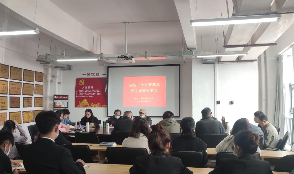10月16日上午10时,澳门十大网投平台排行党总支组织全体党员教师、学生代表到明礼堂集中收看党的二十大开幕会。为了更好地领会并贯彻会议精神,由校党委委员、副校长李光祥带队,统战部部长刘燕、组织部兼人事处处长董云、资产管理办公室主任何良君下沉到澳门十大网投平台排行,与澳门十大网投平台排行党总支师生代表开展座谈交流,澳门十大网投平台排行党总支书记李艳、院长彭明兴、副书记徐波、副院长罗启钟带领部分党员教师及学生代表参加此次座谈。