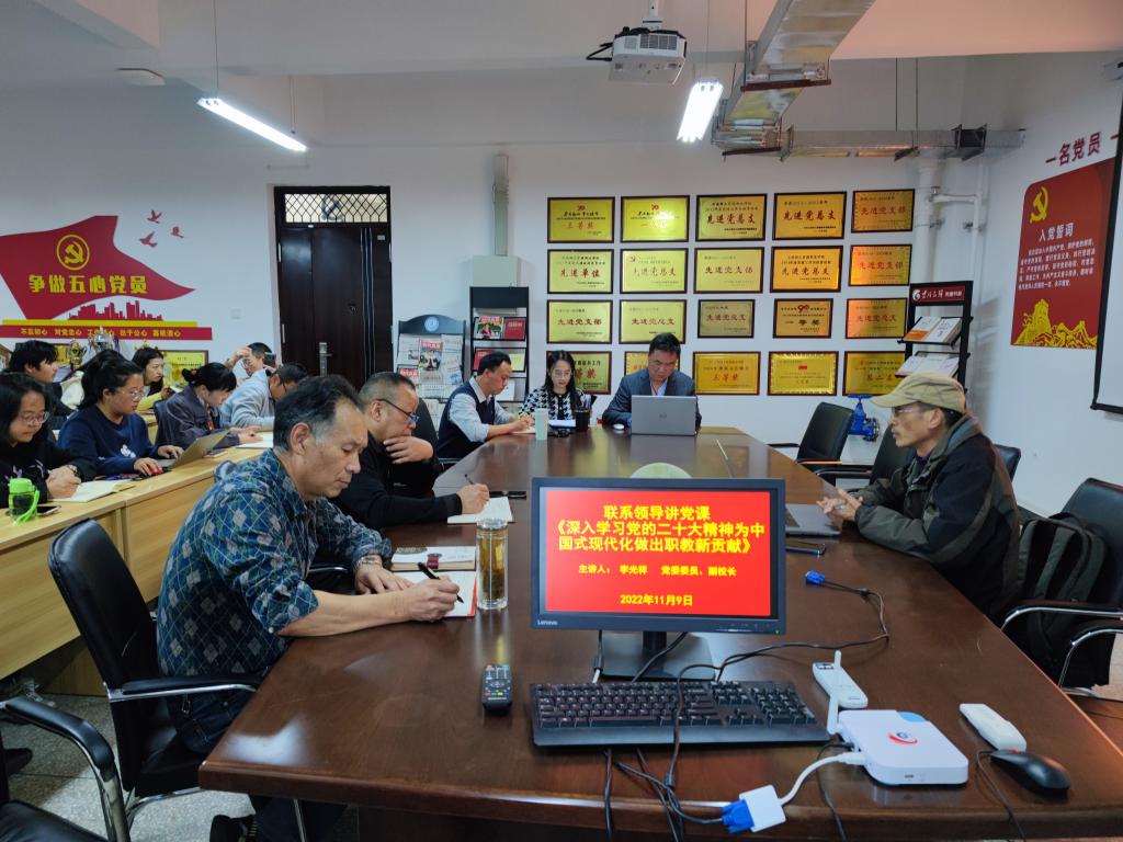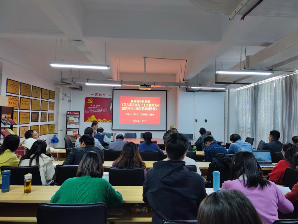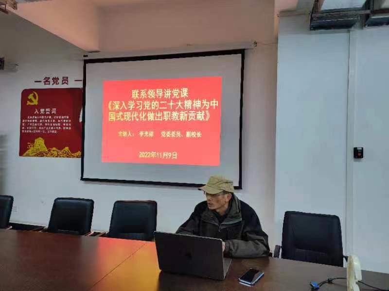为深入学习宣传贯彻党的二十大精神,把全体教职工的思想统一到党的二十大精神上来,把力量凝聚到党的二十大确定的各项任务上来,2022年11月9日下午,澳门十大网投平台排行在明尚楼C301组织“深入学习党的二十大精神,为中国式现代化做出职教新贡献”专题党课。党课由学院联系领导、校党委委员李光祥副校长主讲,全院教师参加党课学习。