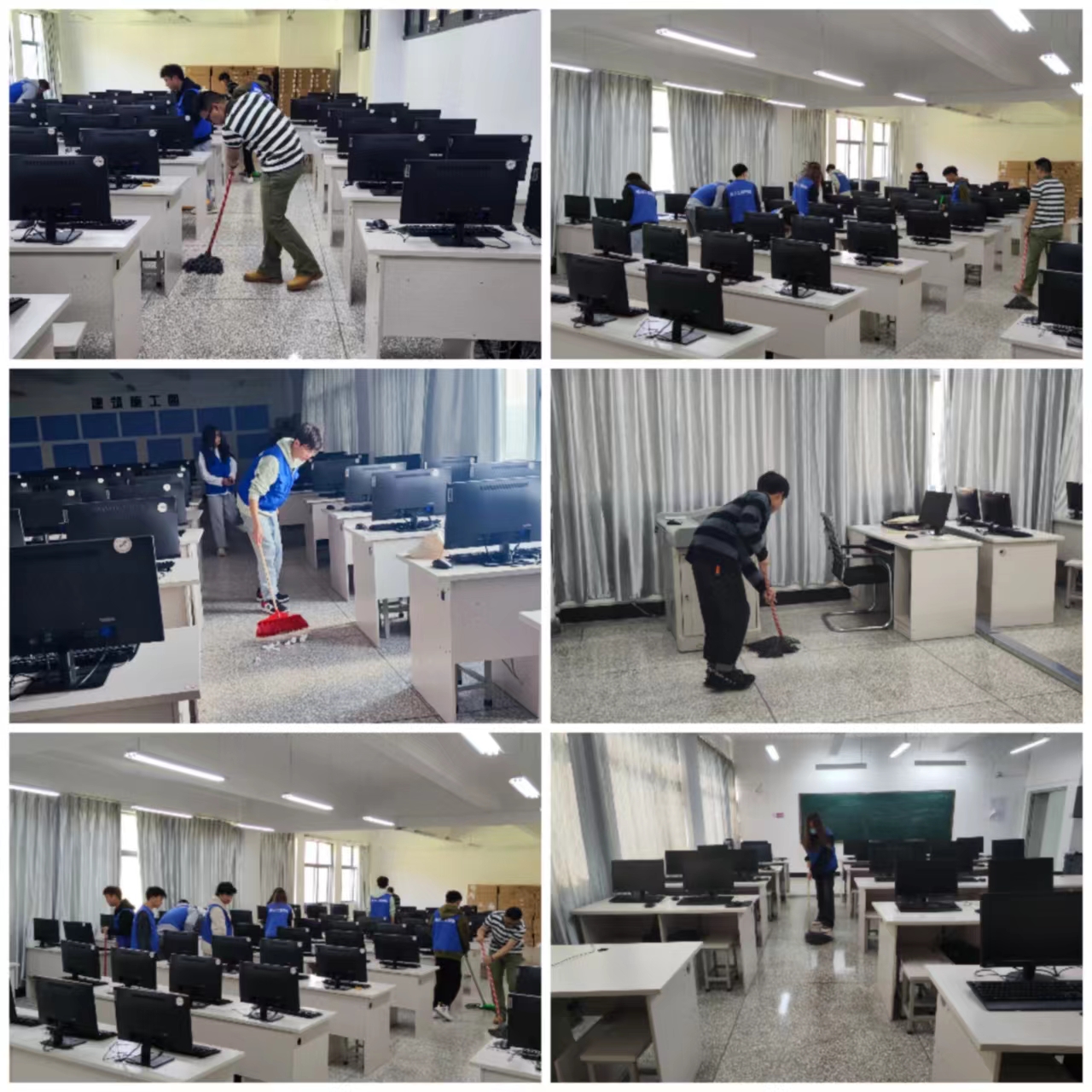 3月26日上午,为营造干净卫生、美丽舒适的校园环境。十大网投组织20余名志愿者对明尚楼C区5楼电脑机房进行卫生大扫除。志愿者们用抹布、扫帚、拖把、垃圾袋等清洁工具,将明尚楼机房的垃圾,纸屑清理的干干净净,电脑、桌椅、地板等卫生死角擦拭的明亮清洁。