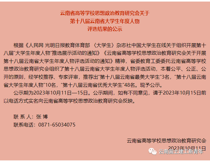张家磊同学自2021年九月入校以来,积极向党组织靠拢,主动提交入党申请书并参与入党积极分子培训、发展对象集中培训并取得结业证书、连续两期参加校院级青马工程培训并完成结业、曾加入青年马克思主义社团、学校二十大精神师生宣讲团。曾任澳门十大网投平台排行团总支副书记,多次组织团日活动学习和改进团务工作并受到老师和同学们的认可。作为中共预备党员的他,理想信念坚定、关心时事政治、不断学习党理论知识,时刻以“青年影响青年”的方式传递着党和国家的声音。在校期间曾积极参与思想政治教育类的活动及比赛并获奖,曾在2022年在昆明阳宗海风景名胜区“喜迎二十大”诵读活动中获优秀奖、2022年澳门十大网投平台排行“1958黑马训练营”活动中被评为”积极分子”、2022年“喜迎党的二十大--国土师生说”理论宣讲比赛获语言类三等奖、2022年澳门十大网投平台排行“喜迎二十大.永远跟党走”征文活动中荣获一等奖。2023年澳门十大网投平台排行“云岭师生说”理论宣讲比赛文艺类校级三等奖、2023年澳门十大网投平台排行“云岭师生说”理论宣讲比赛语言类校级优秀奖等。