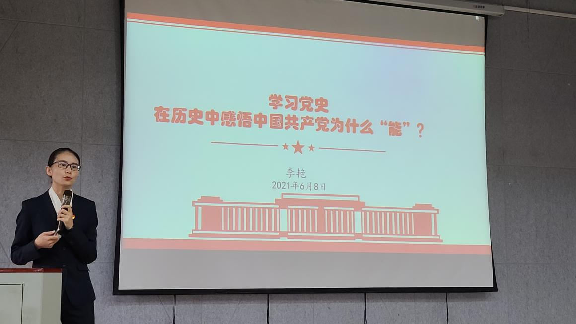 学院党总支书记李艳作《学习党史,在历史中感悟中国共产党为什么“能”》专题第一讲。她从“学好历史知识,形成历史认知”、“吸取历史经验,把握历史大势”、“传承历史精神,坚守历史使命”、“梳理历史观念,用好历史方法”四个方面指出,入党是人生理想与信仰的正确选择,并以自己青年时代的切身体验勉励学员们要树立正确的价值观和人生观。入党的过程是锤炼能力、磨炼意志的过程,党的教育将使我们终身受益。她强调,青年一代既要有志向也要有态度,全体学员应认真贯彻落实习近平新时代中国特色社会主义思想,讲政治、有信念,讲规矩、有纪律,讲道德、有品行,讲奉献、有作为,成为有政治信念的合格党员。