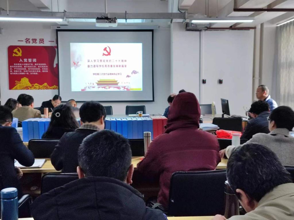 3月2日下午,十大网投党总支组织全体教职工专题学习学校第二次党代会精神。会议由党总支书记李艳主持,院长彭明兴主讲,全体教职工参加。