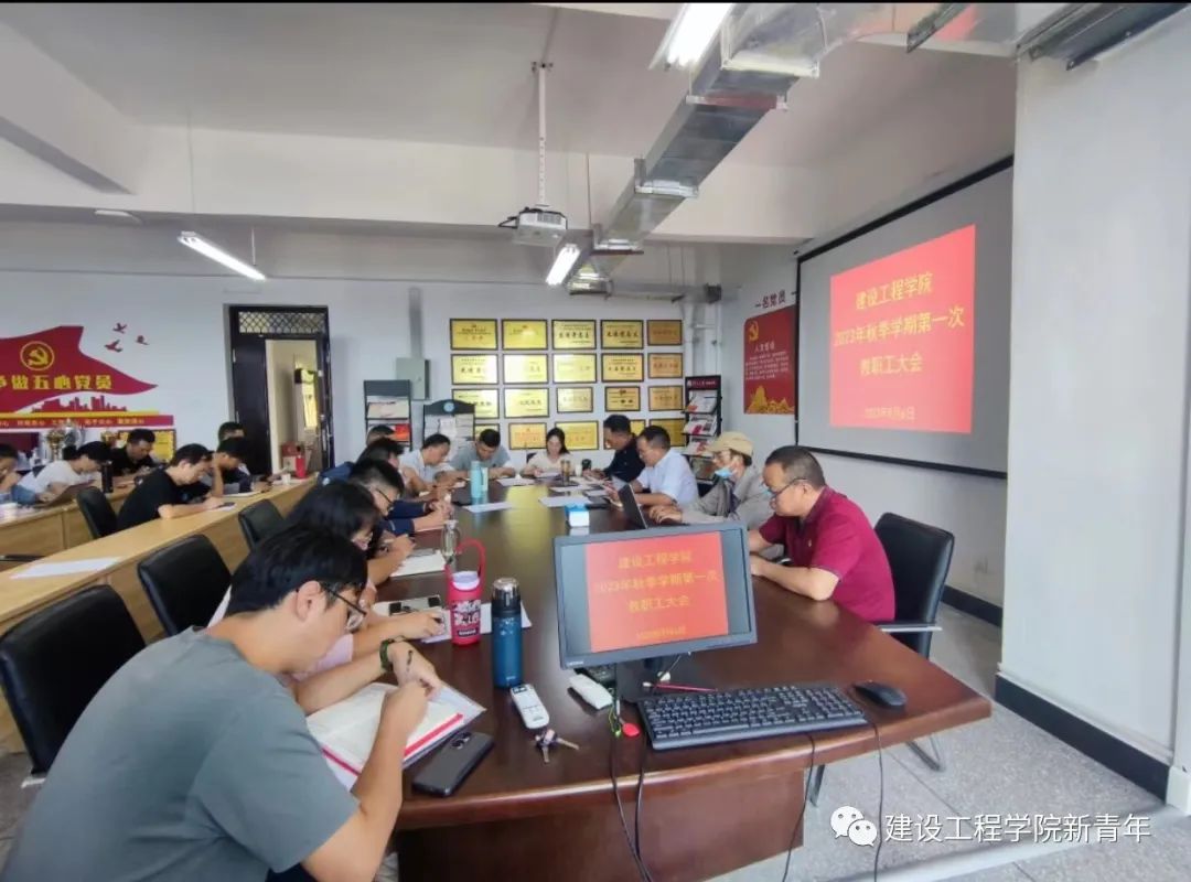2023年9月6日下午14:00,建设工程学院在明尚楼C301会议室召开秋季学期第一次全体教职工大会。学院全体教职工参加会议,校党委委员、联系领导李光祥副校长列席会议。本次会议由党总支副书记李洪香主持。