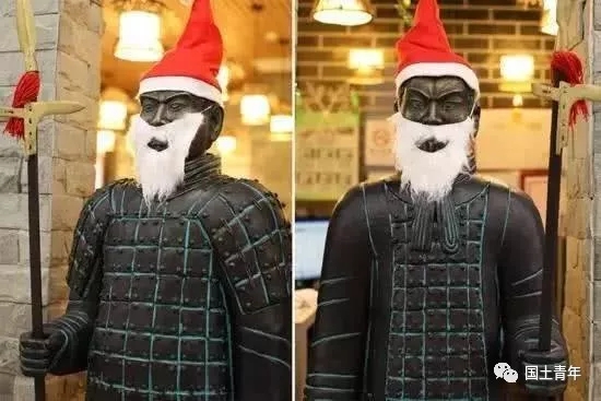 你看看那些无良商家们,给象征着中华传统文化的兵马俑带上圣诞帽,这叫迎合吗?